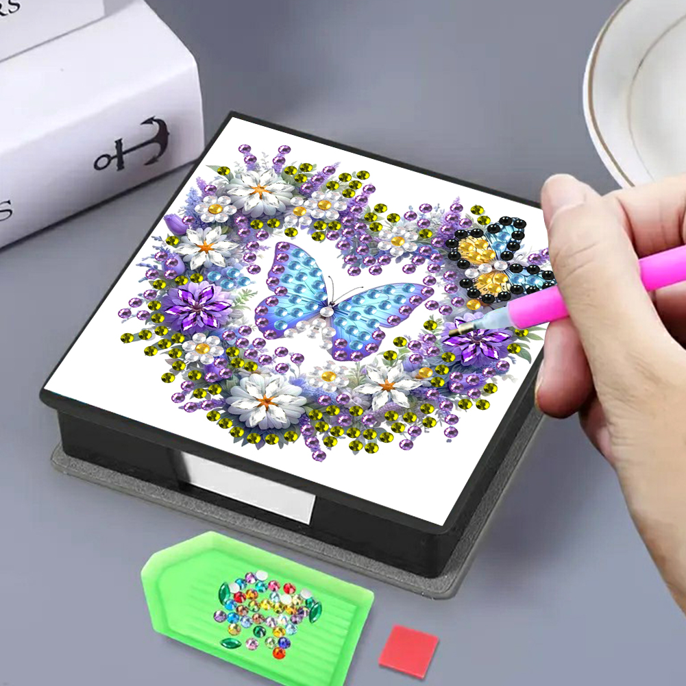 DIY Flower Butterfly Diamond Painting Memo Pad Holder Mosaic Kit for DIY Art Craft