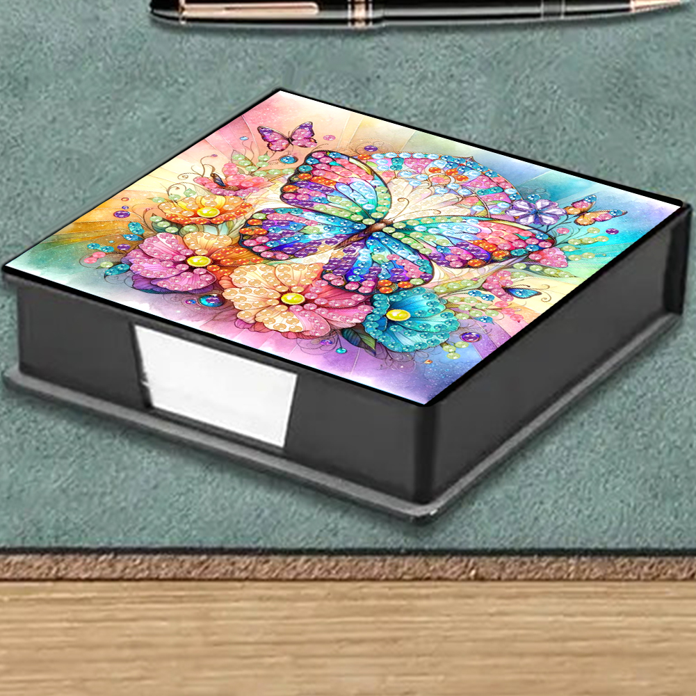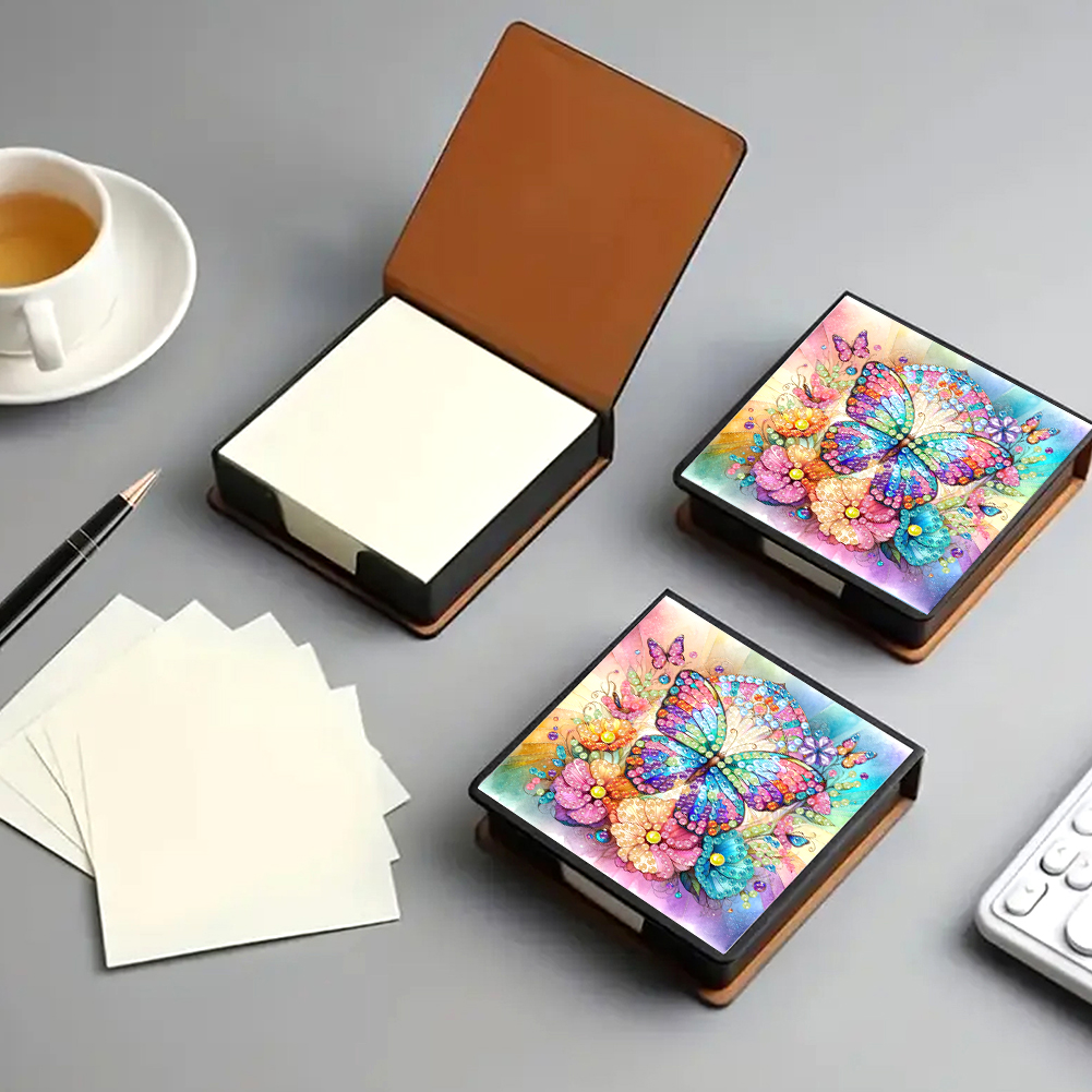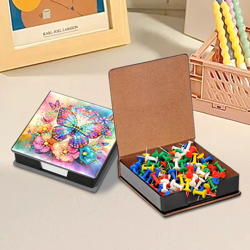 DIY Flower Butterfly Leather Diamond Art Note Box with 160 Sheets of Paper for Beginners