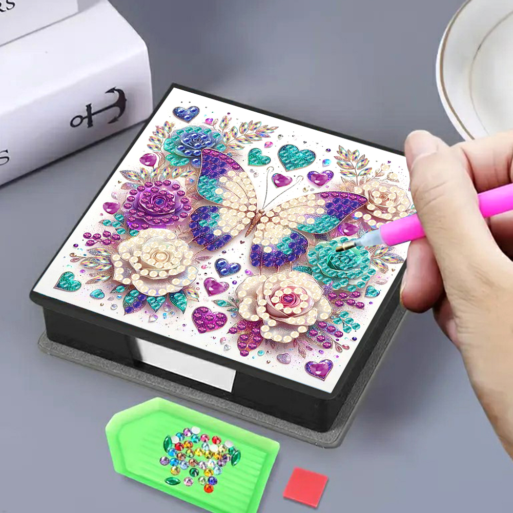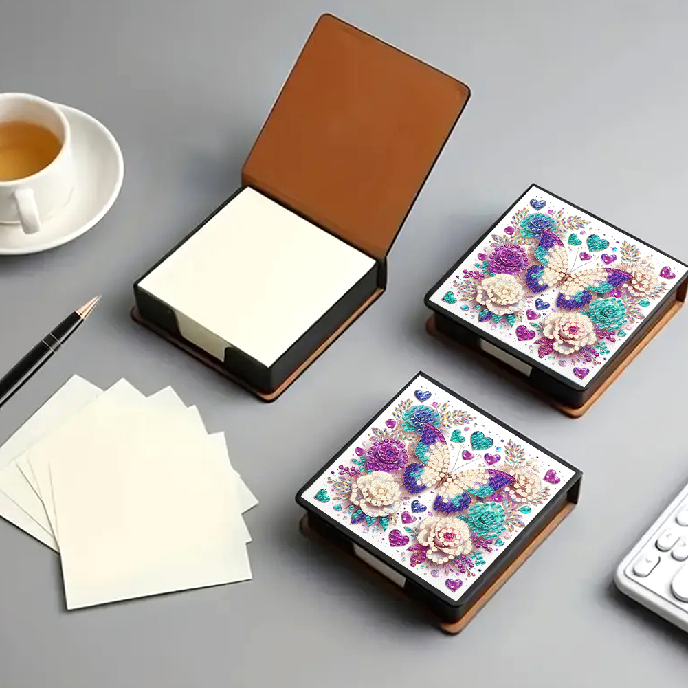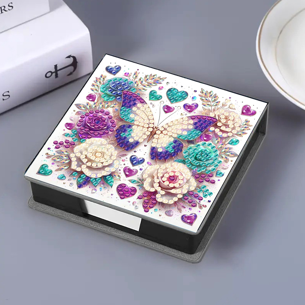 DIY Flower Butterfly Leather Diamond Art Note Box with 160 Sheets of Paper for Beginners