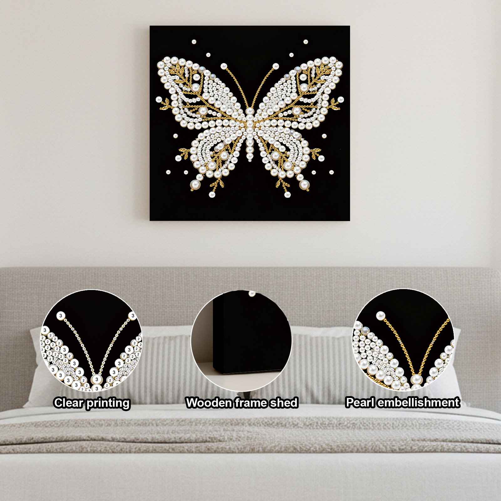 Butterfly DIY Pearl Diamond Painting Kit for Adult Home Decor 25x25cm With Frame