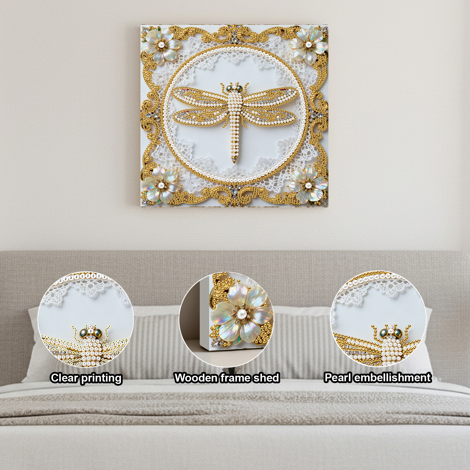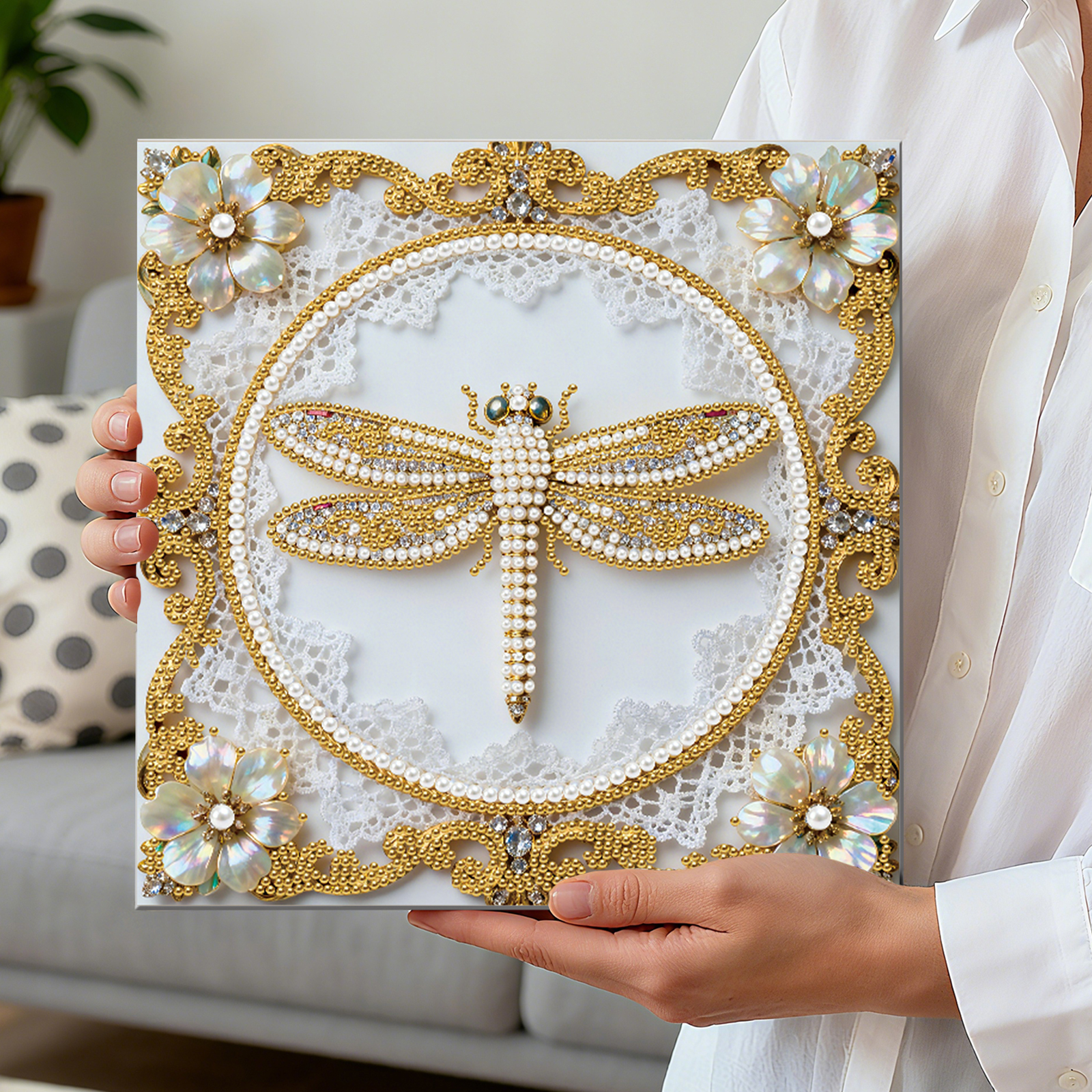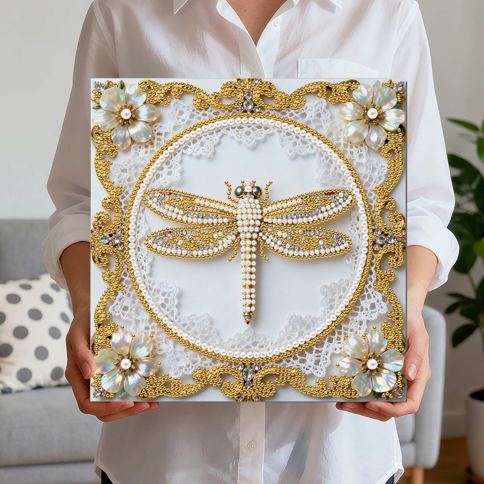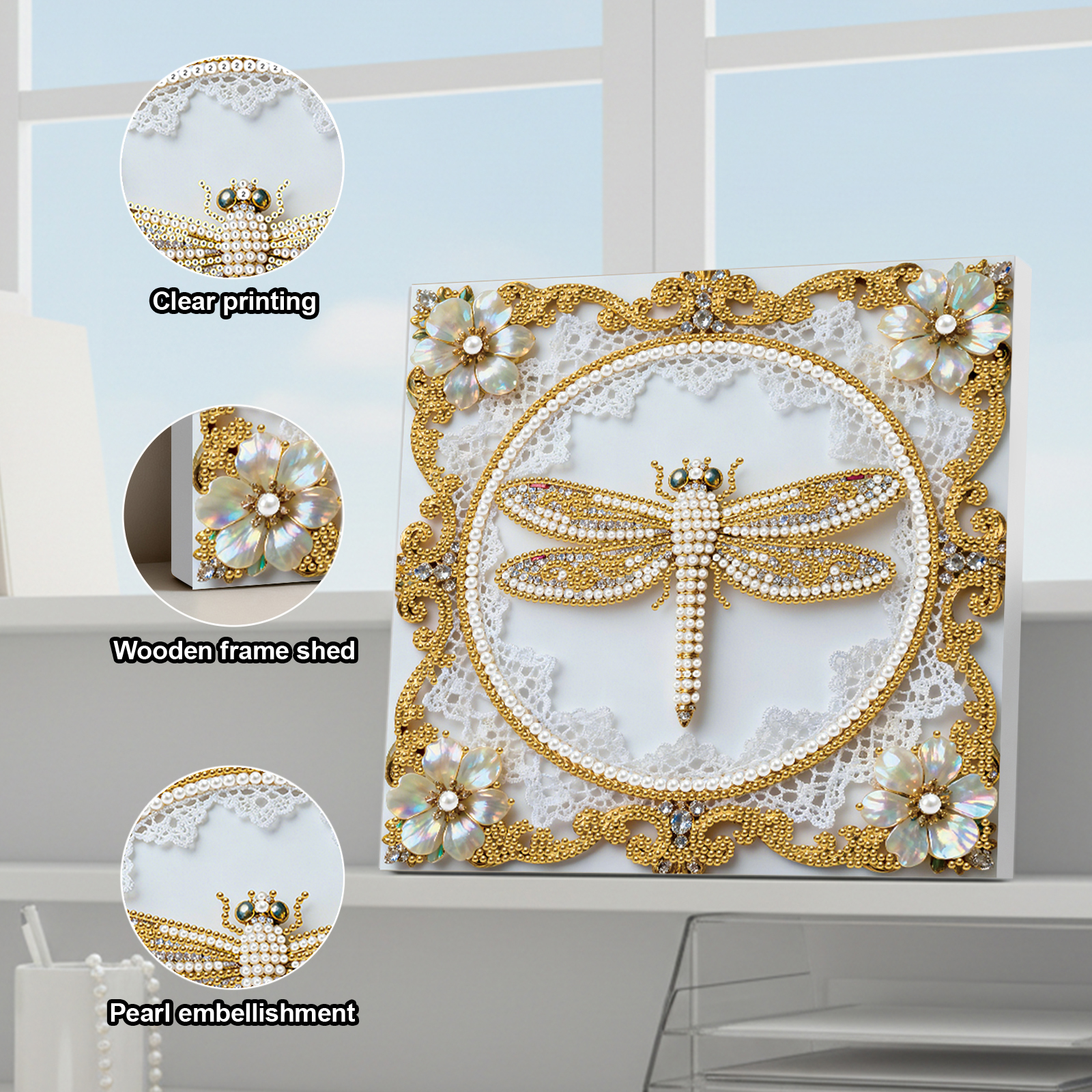 Dragonfly DIY Pearl Diamond Art Kit for Adults Home Decor 25x25cm With Frame