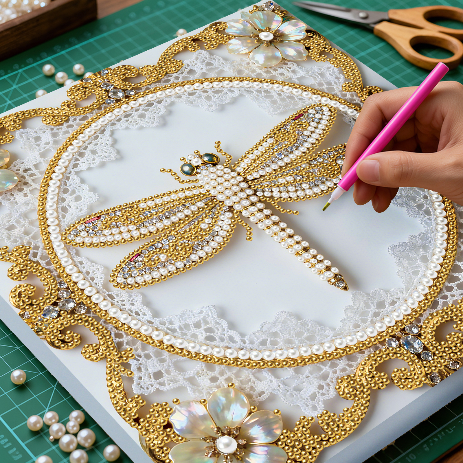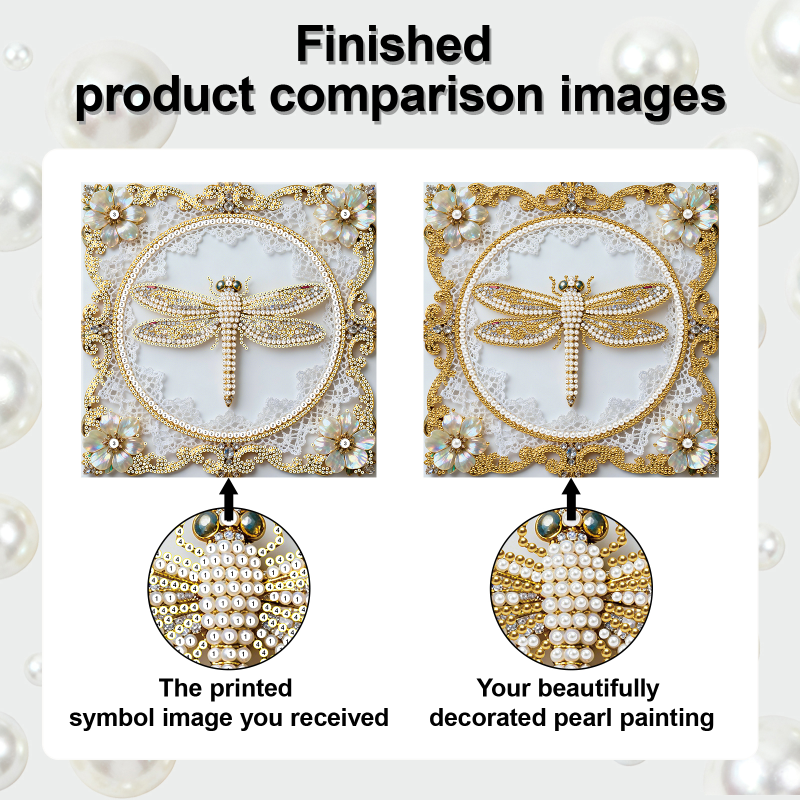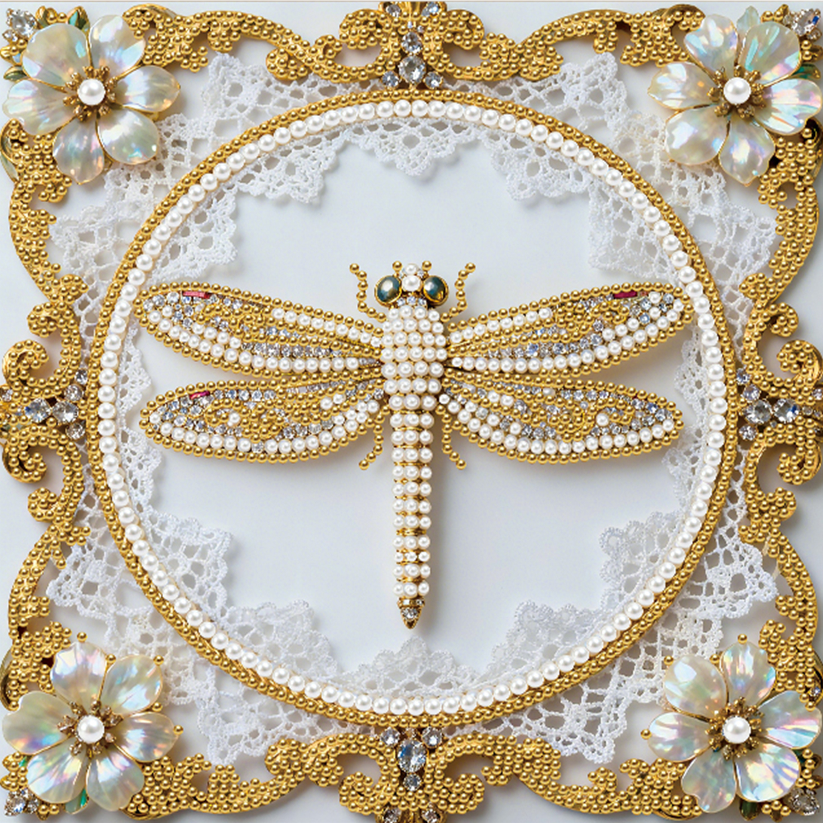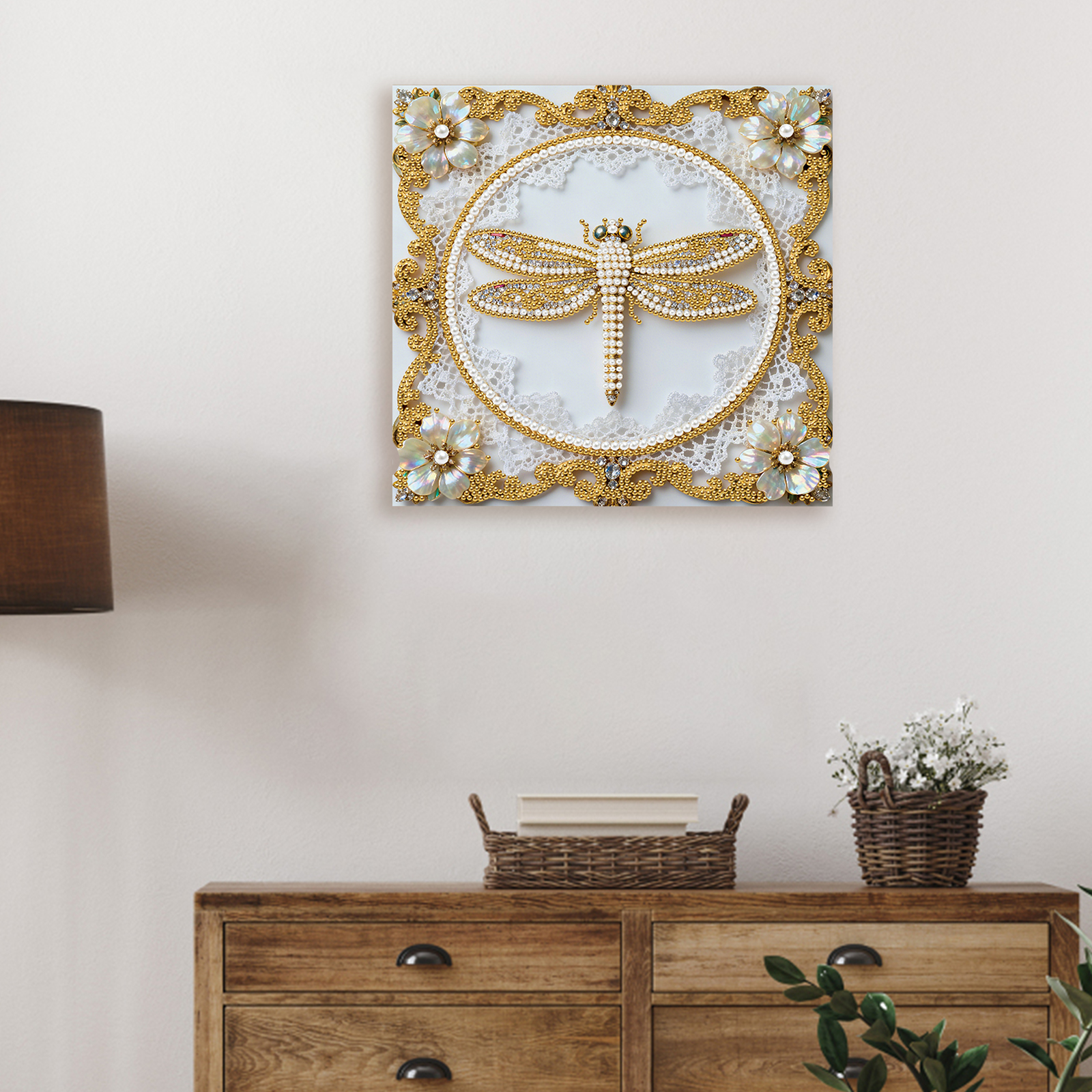 Dragonfly DIY Pearl Diamond Art Kit for Adults Home Decor 25x25cm With Frame