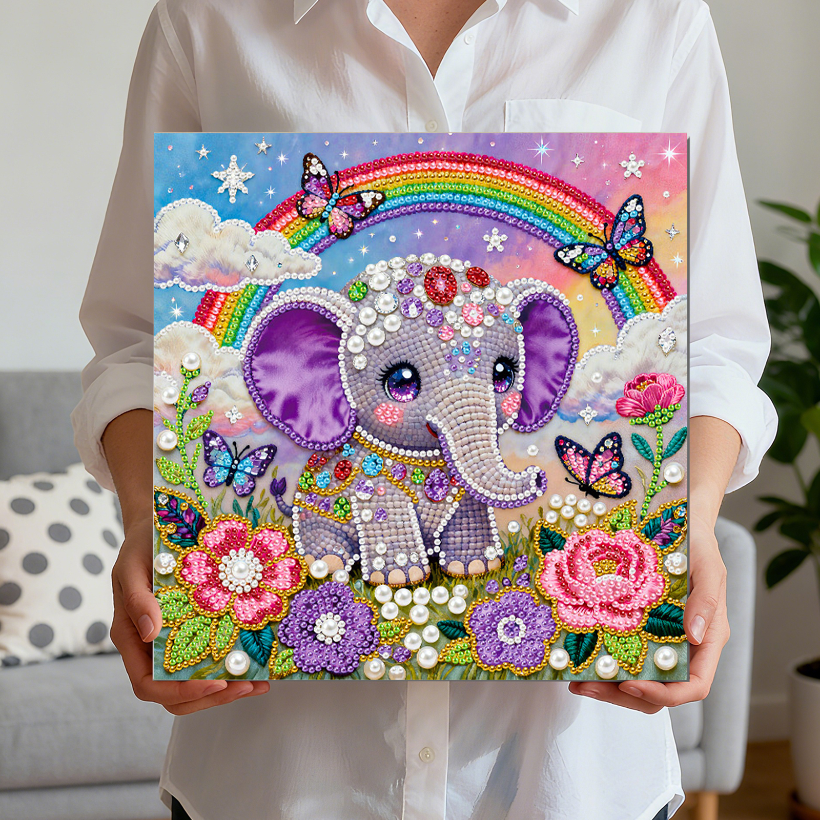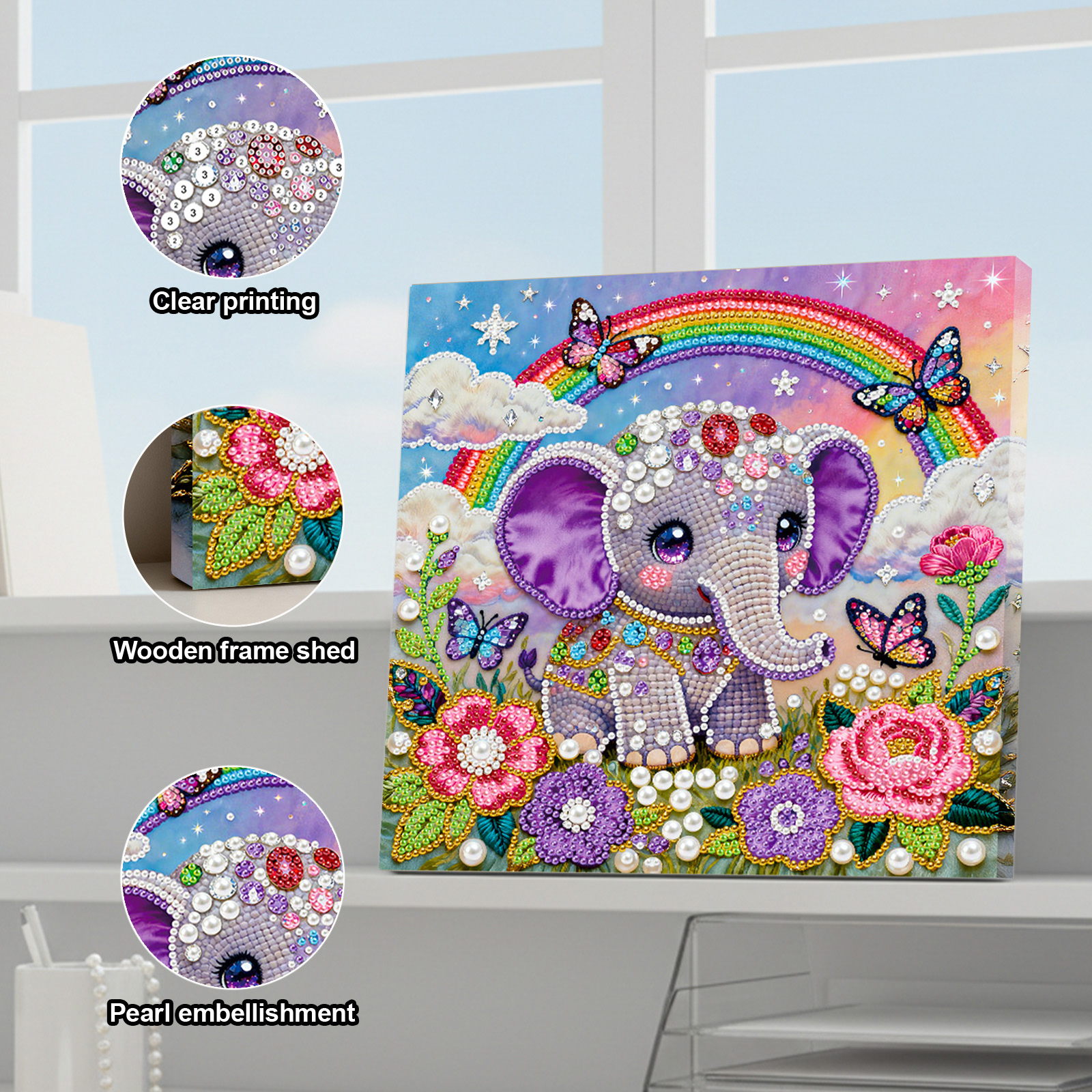 Elephant DIY Pearl Art Diamond Painting Kit for Adult Home Decor 25x25cm With Frame