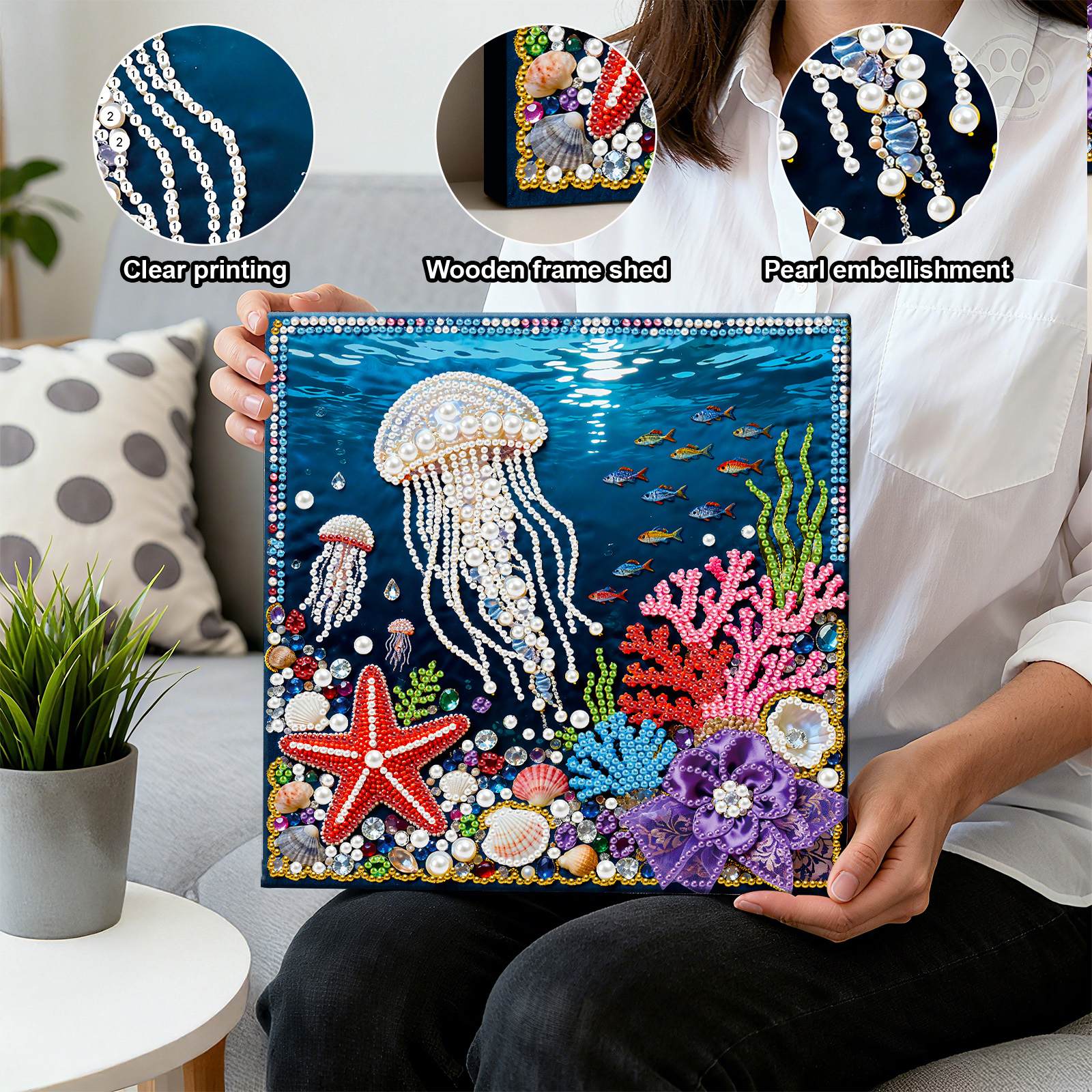 Jellyfish Art Diamond Painting Kit for Adults Home Decor 25x25cm With Frame