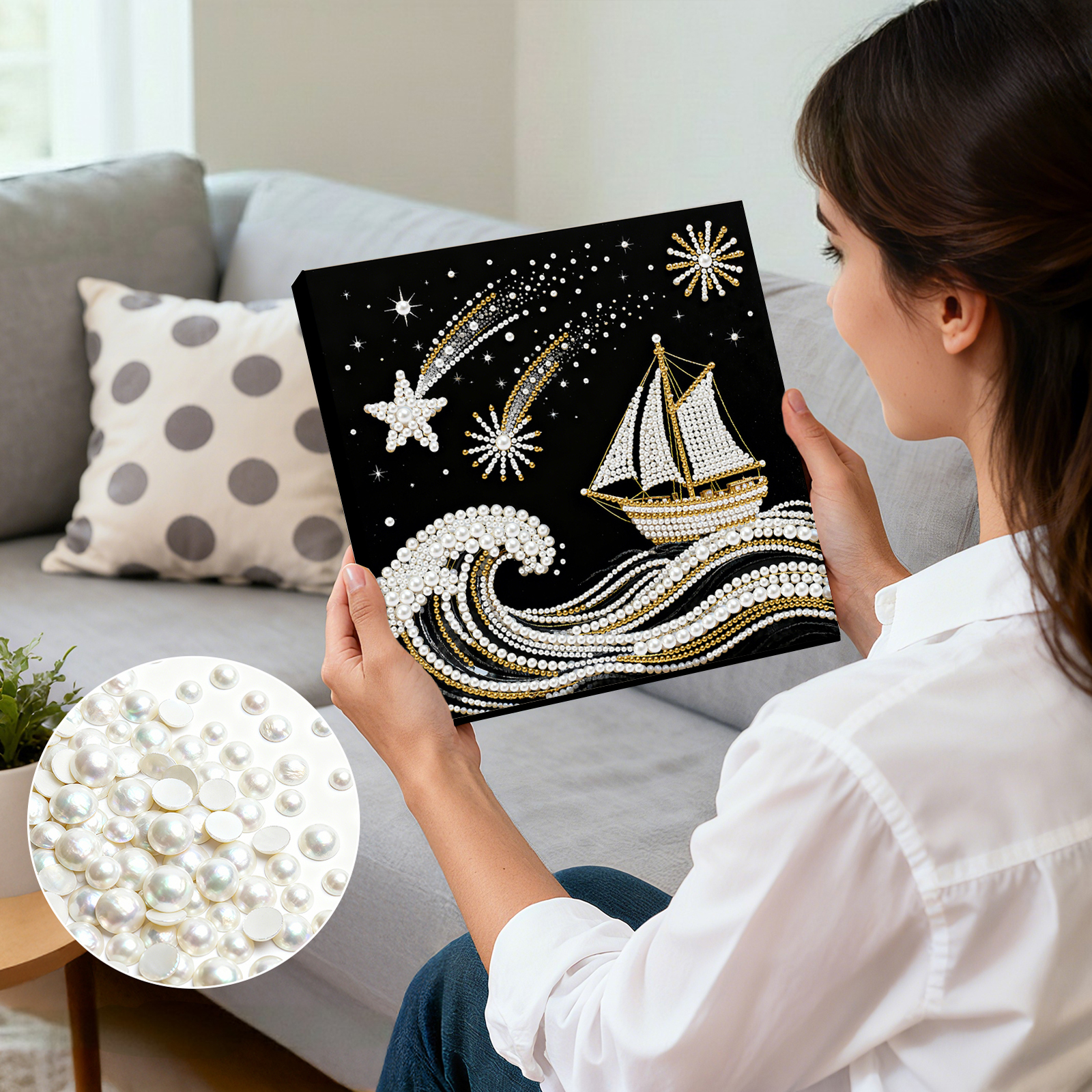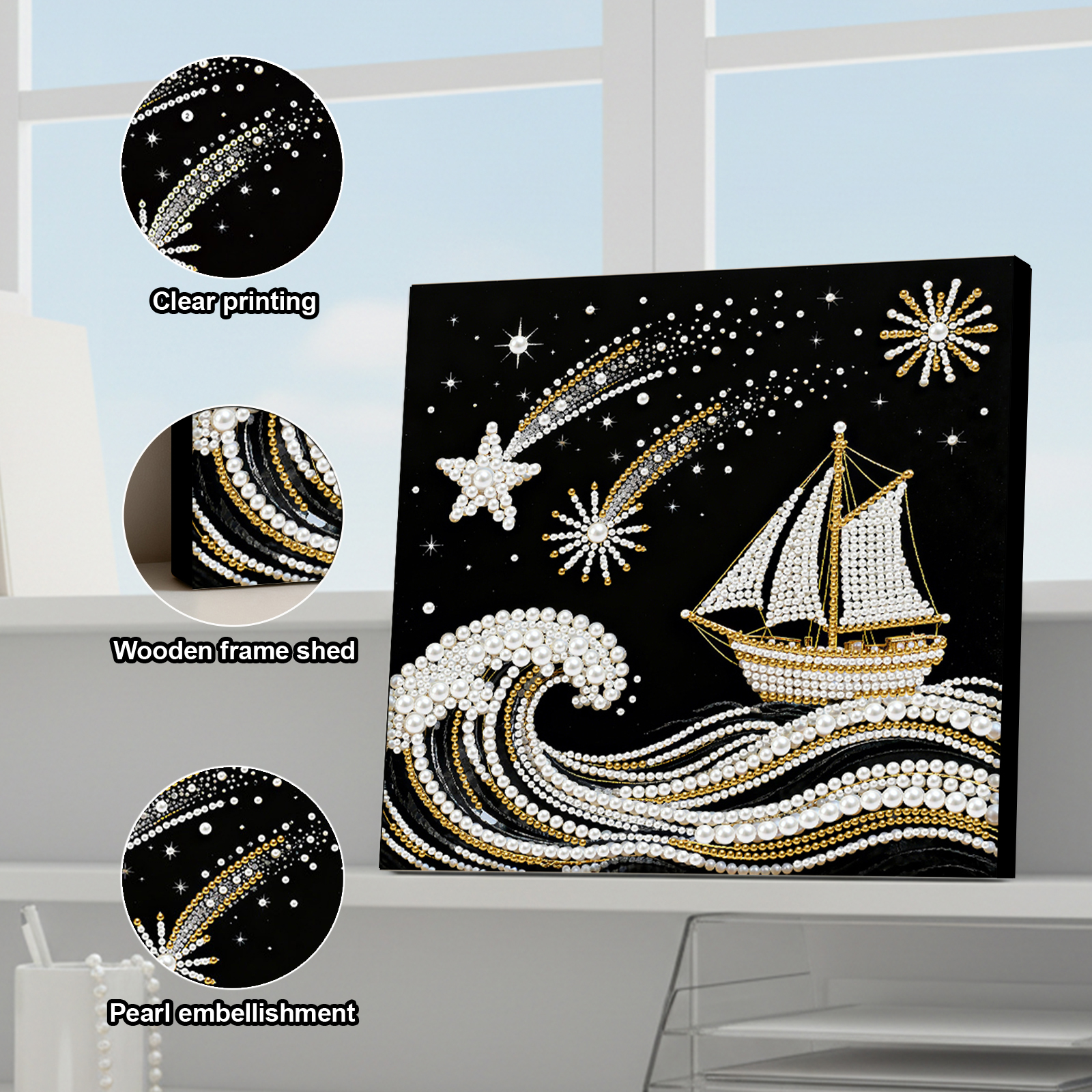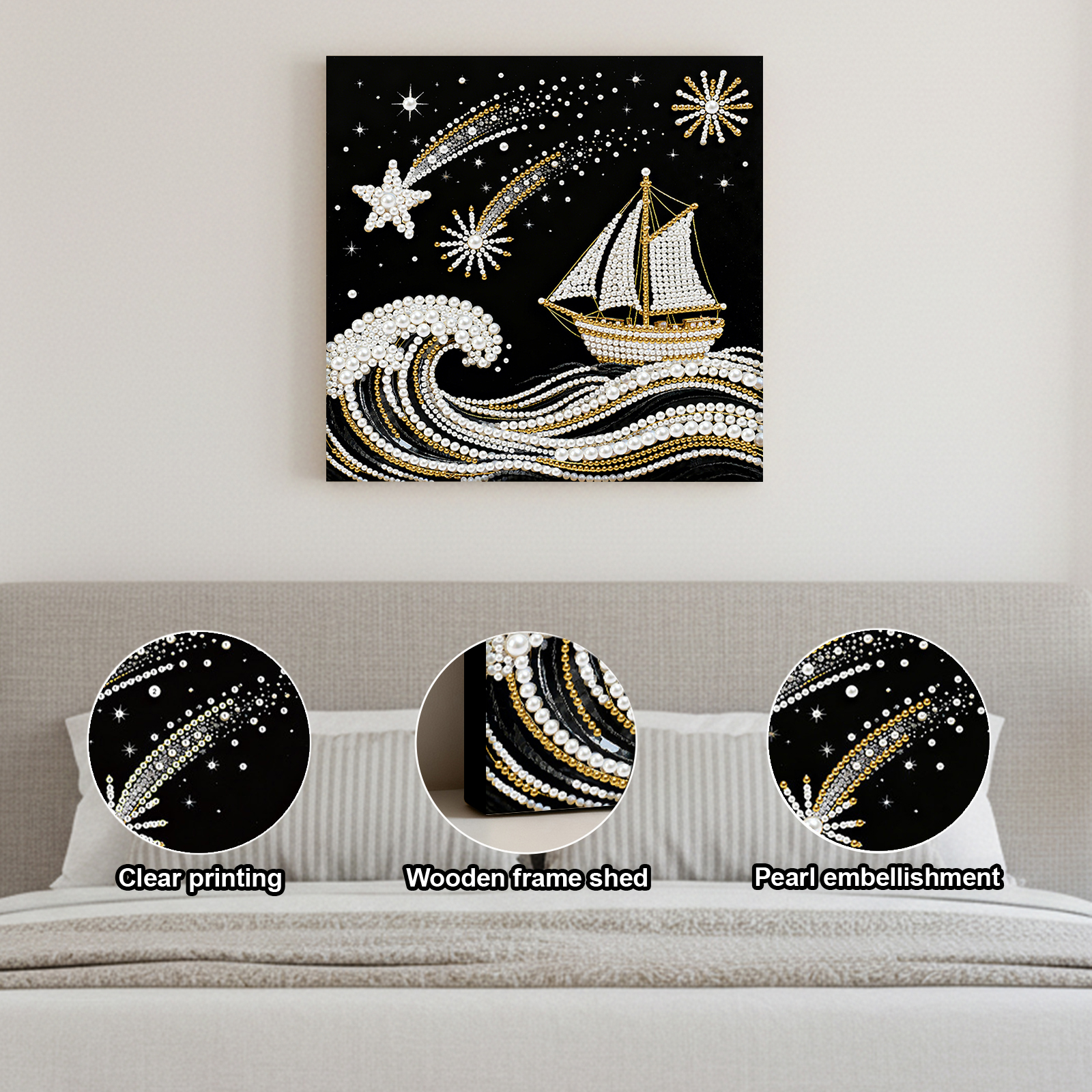 Sailboat DIY Pearl Diamond Art Kit for Adults Home Decor 25x25cm With Frame