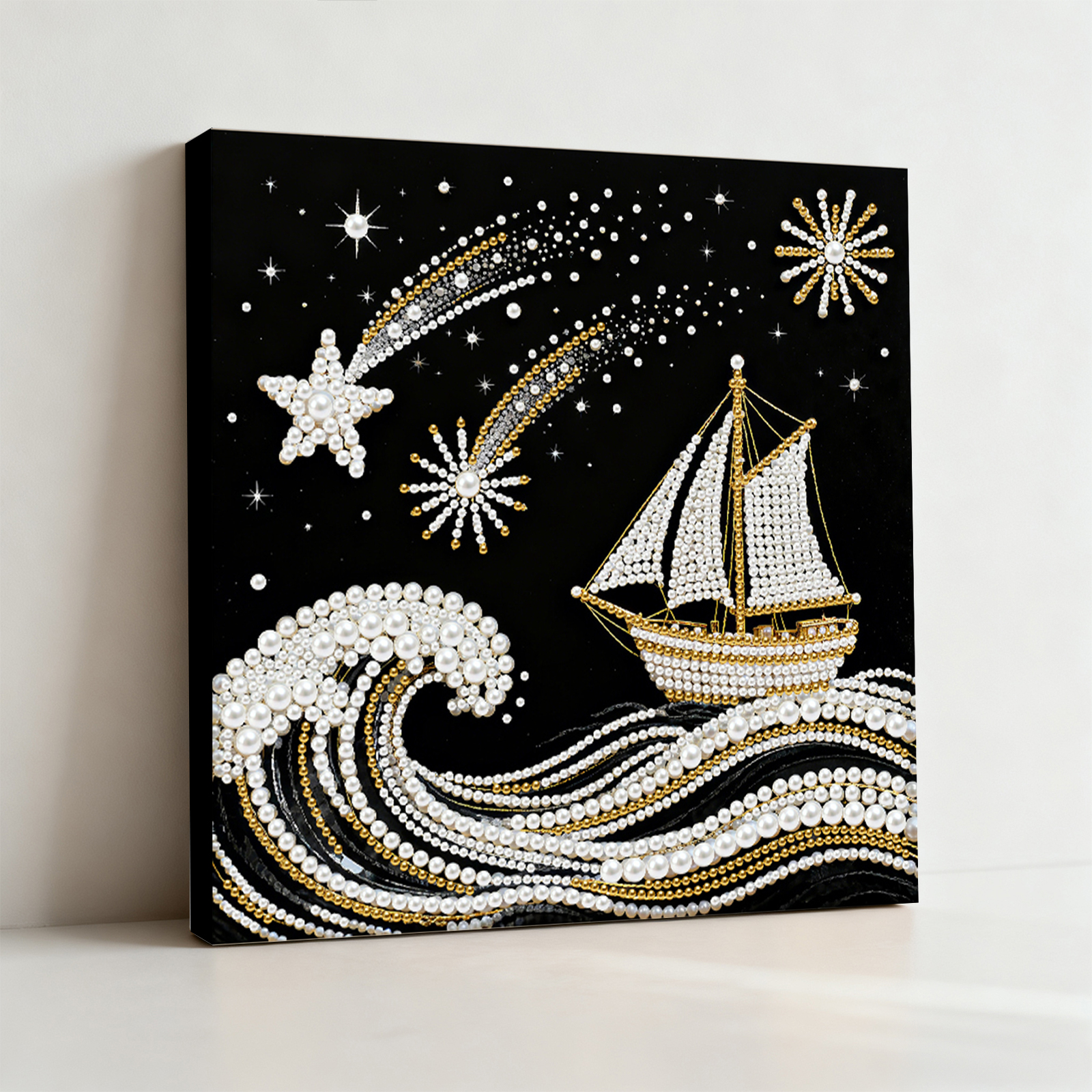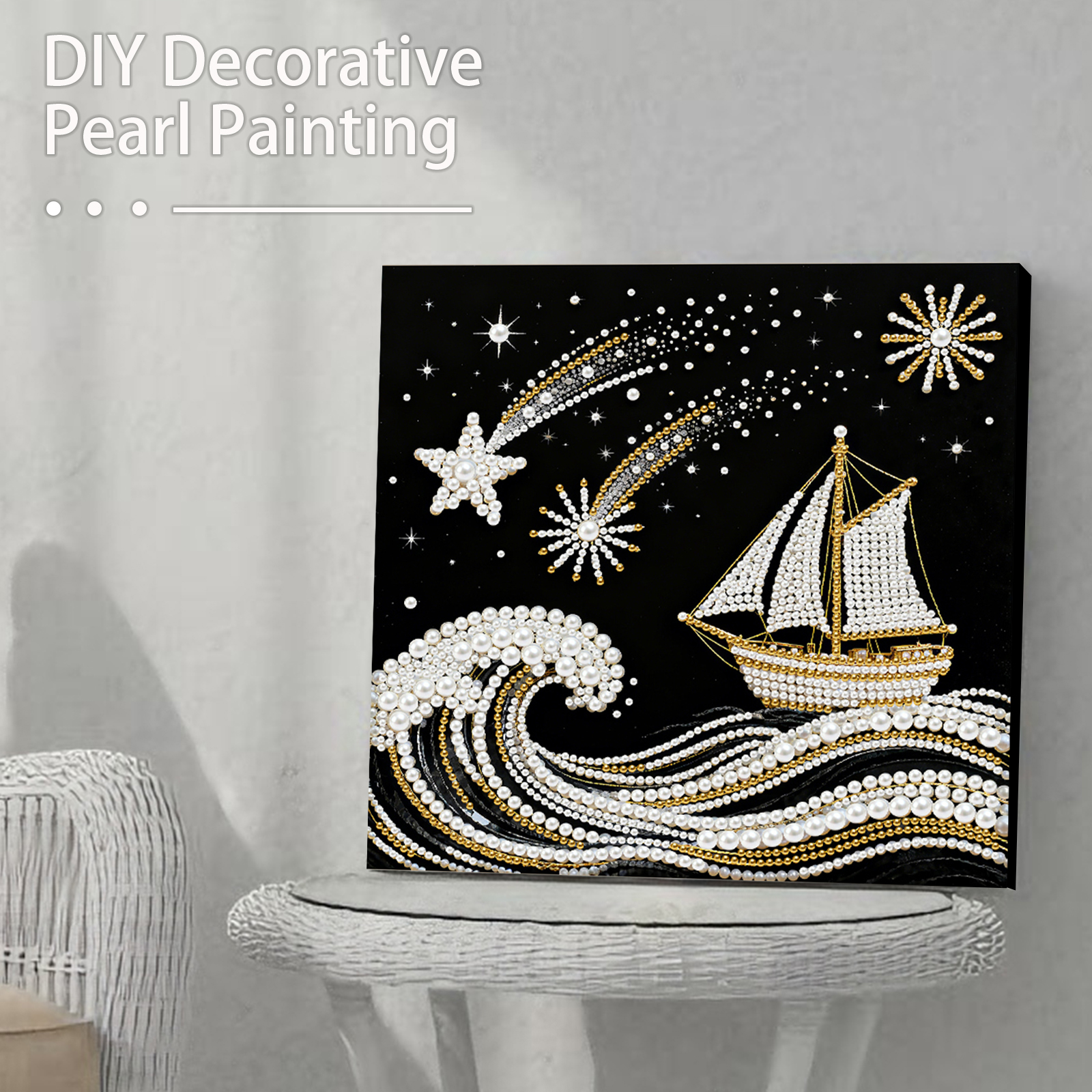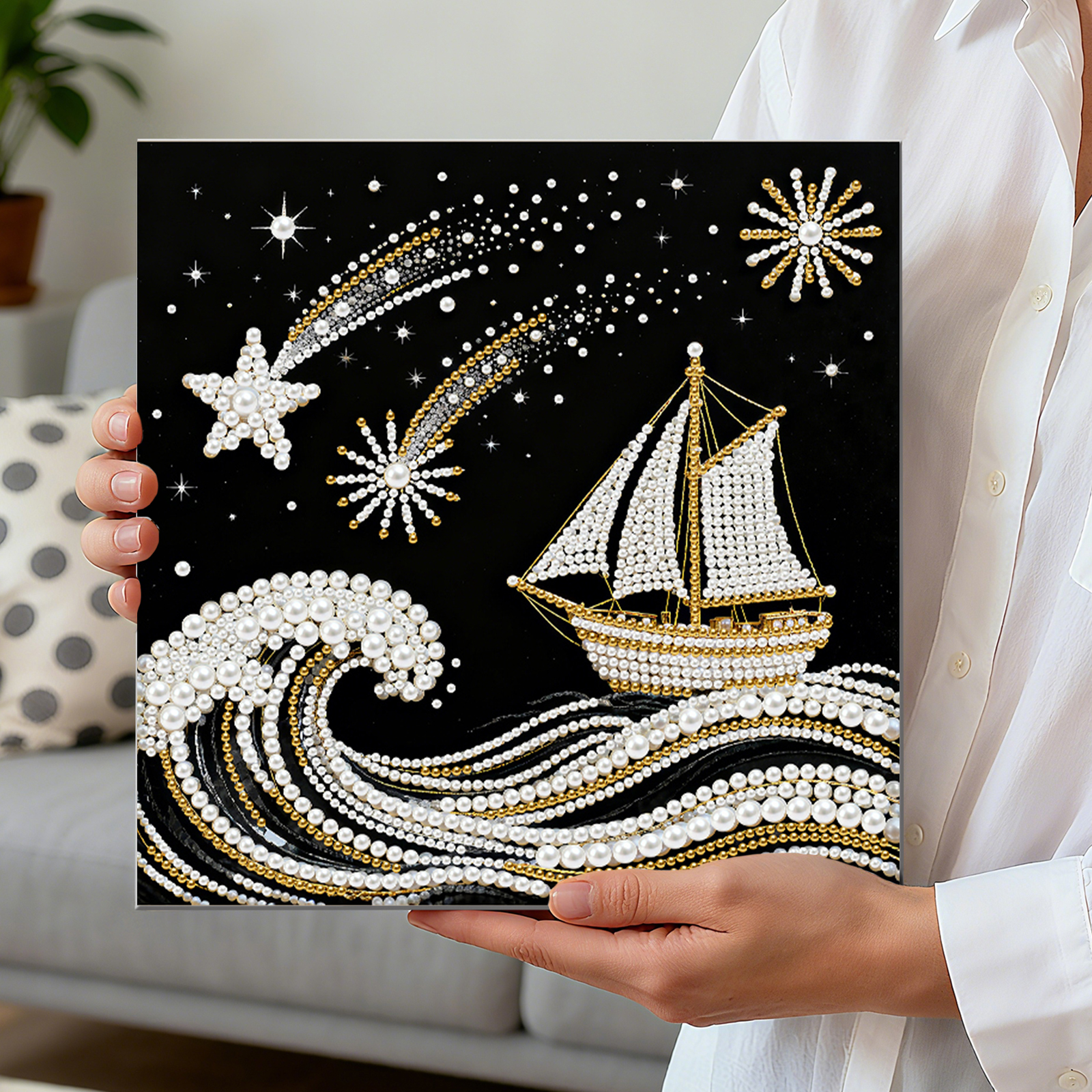 Sailboat DIY Pearl Diamond Art Kit for Adults Home Decor 25x25cm With Frame