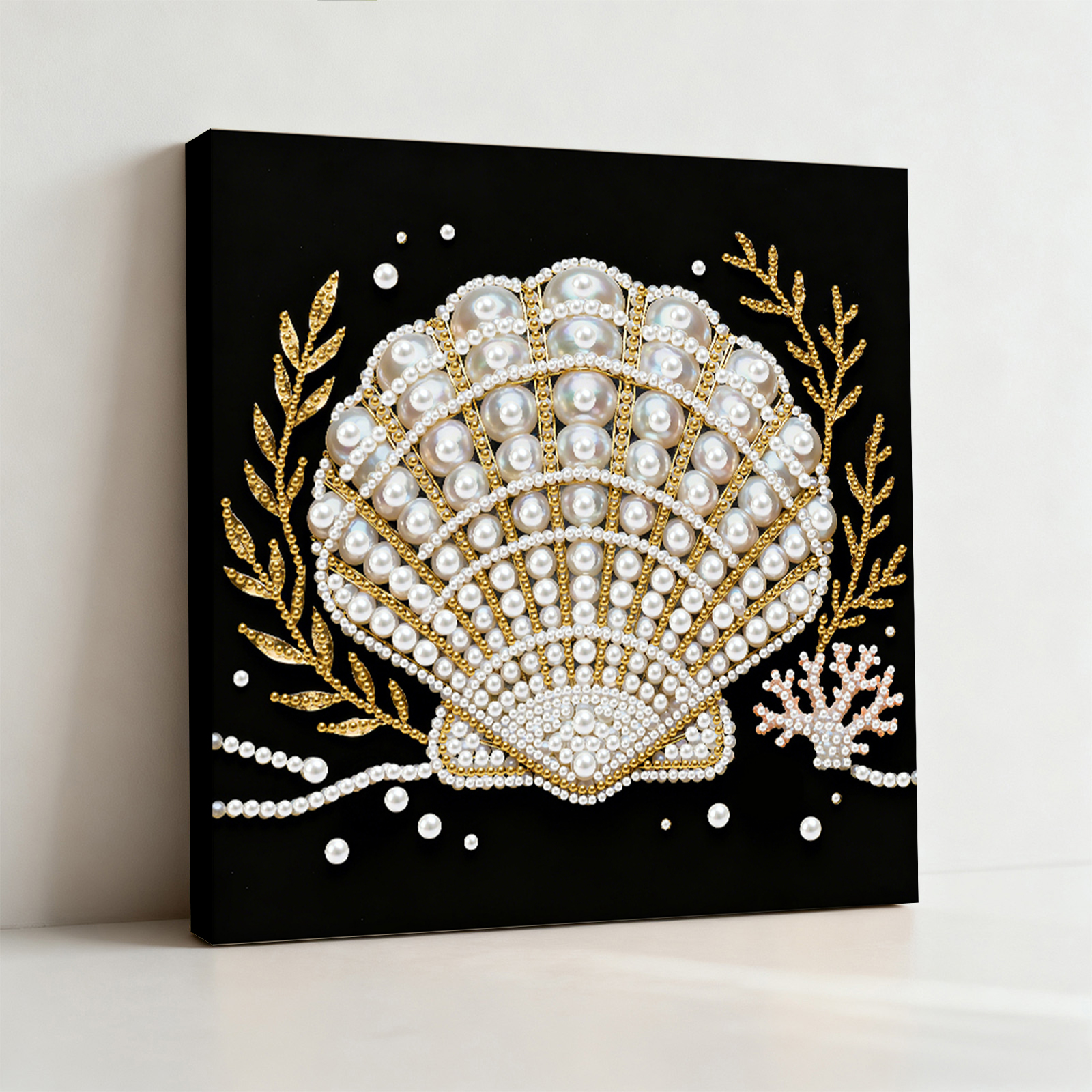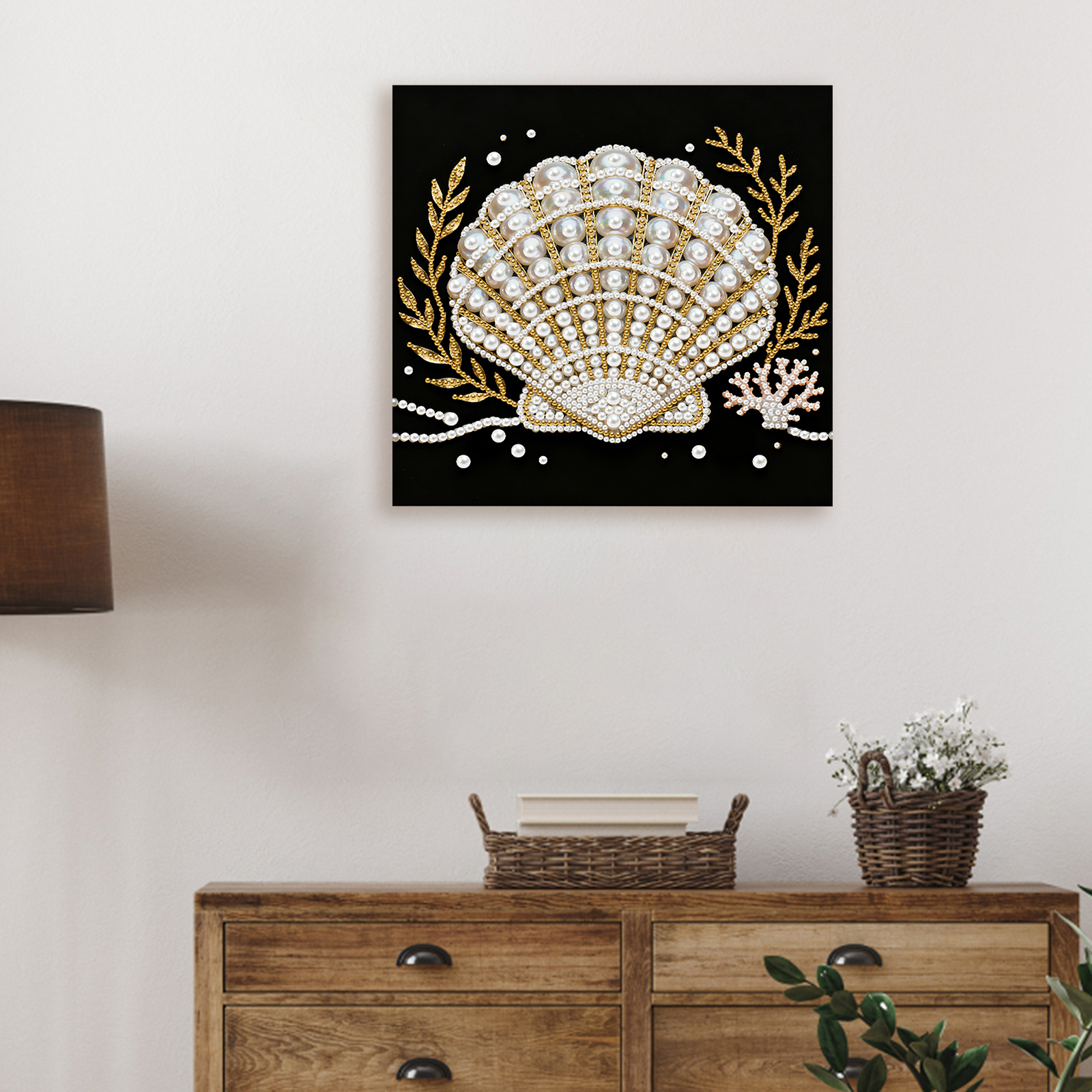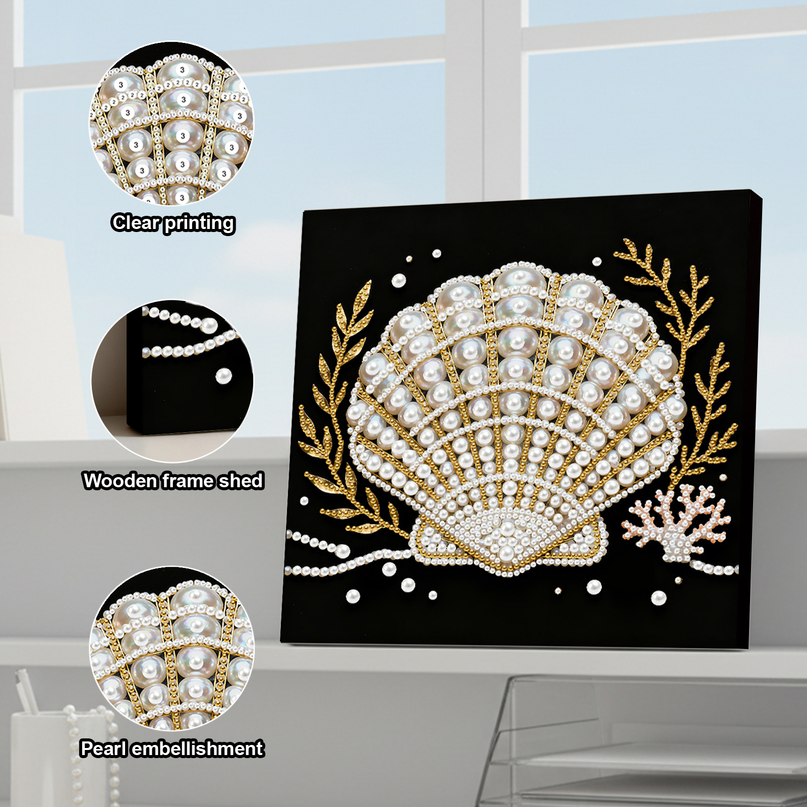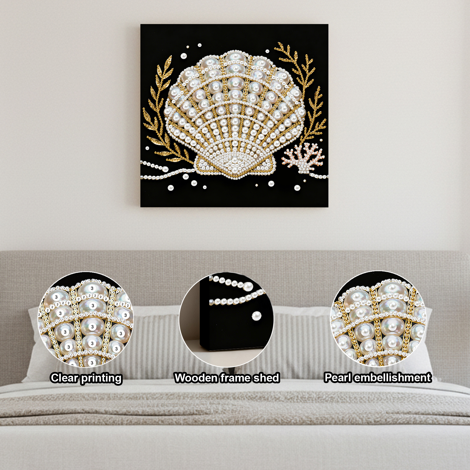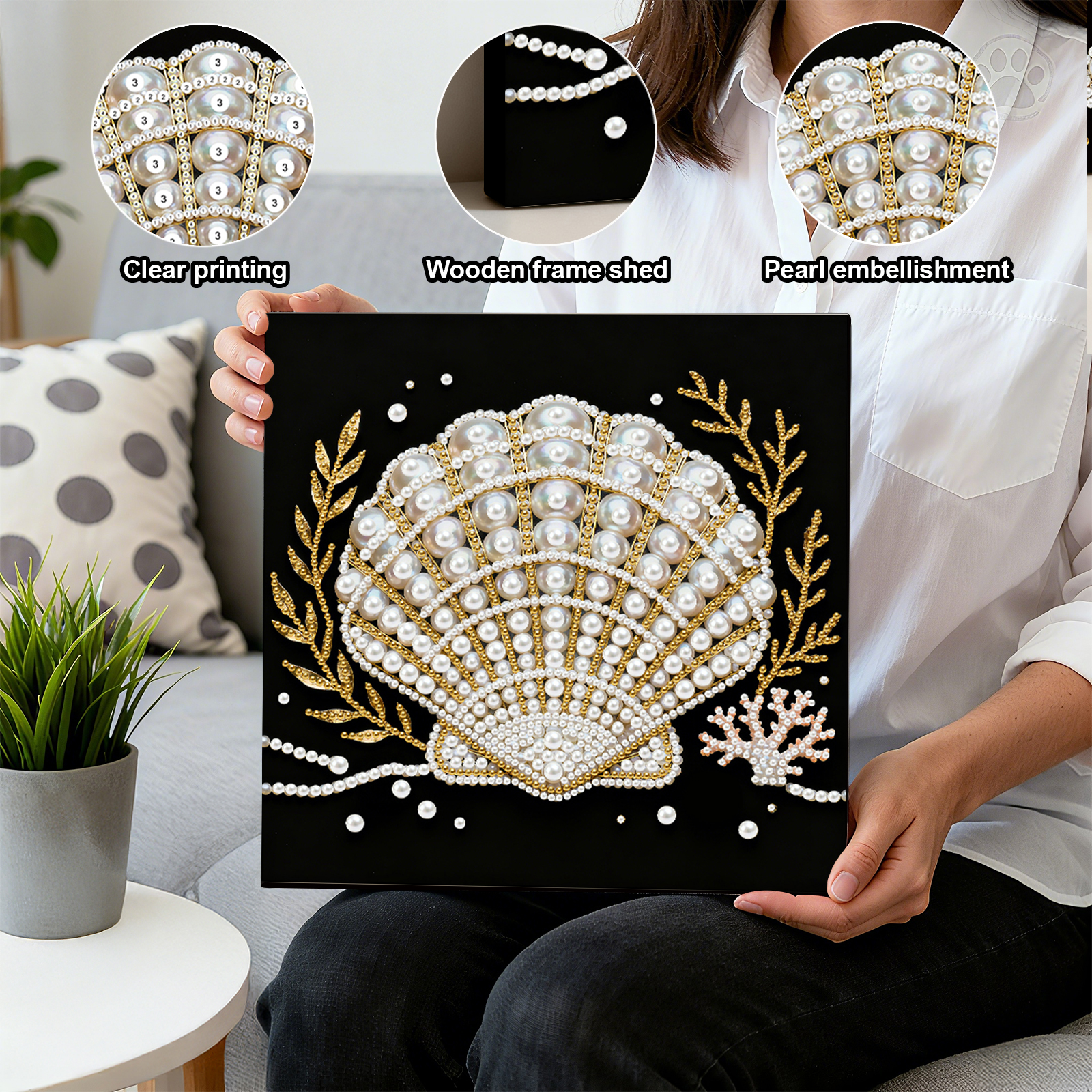 Seashell DIY Pearl Art Diamond Painting Kit for Adult Home Decor 25x25cm With Frame