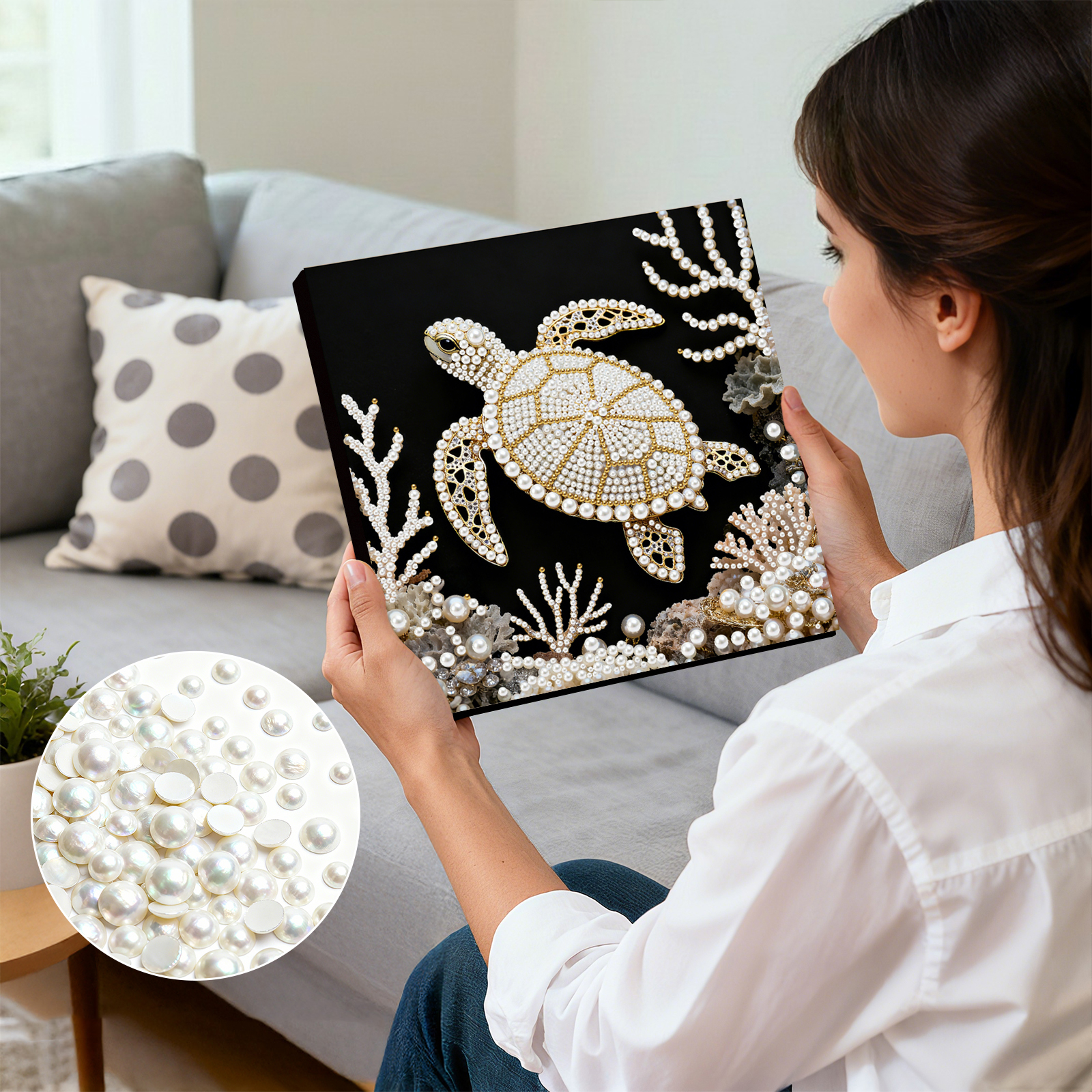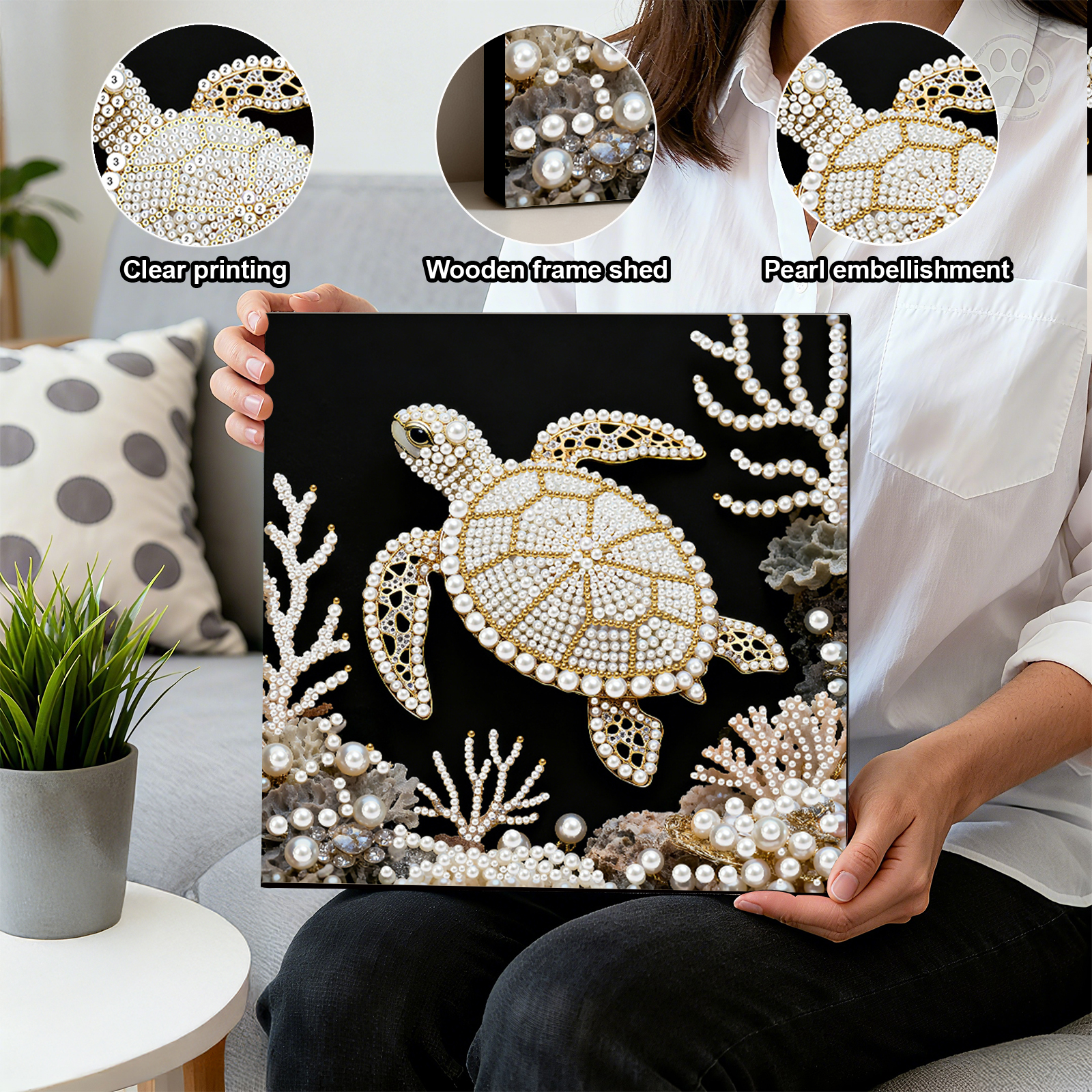 Turtle DIY Pearl Art Diamond Painting Kit for Adults Home Decor 25x25cm With Frame