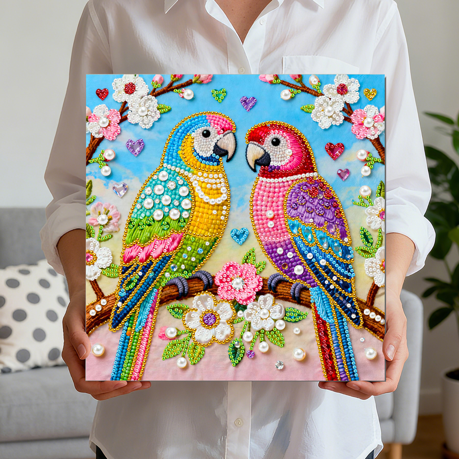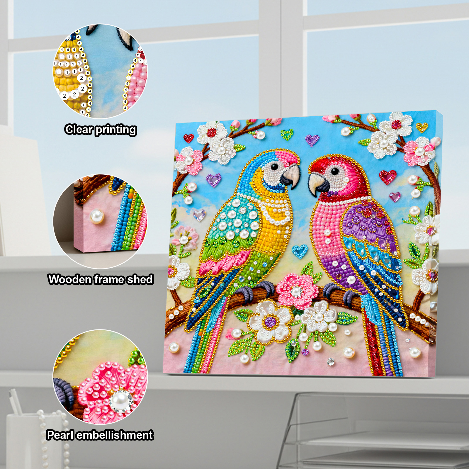 Two Birds Art Diamond Painting Kit for Adults Home Decor 25x25cm With Frame