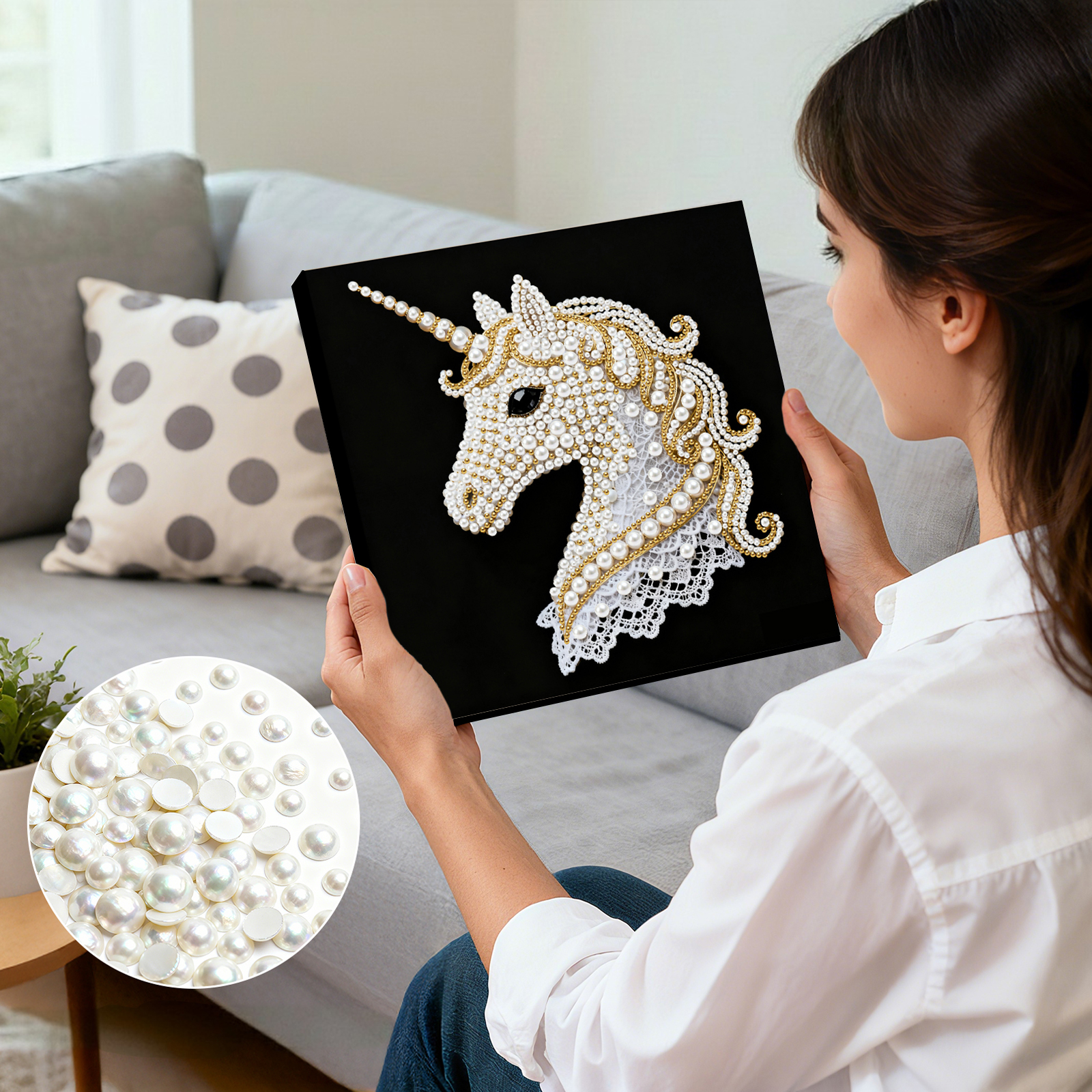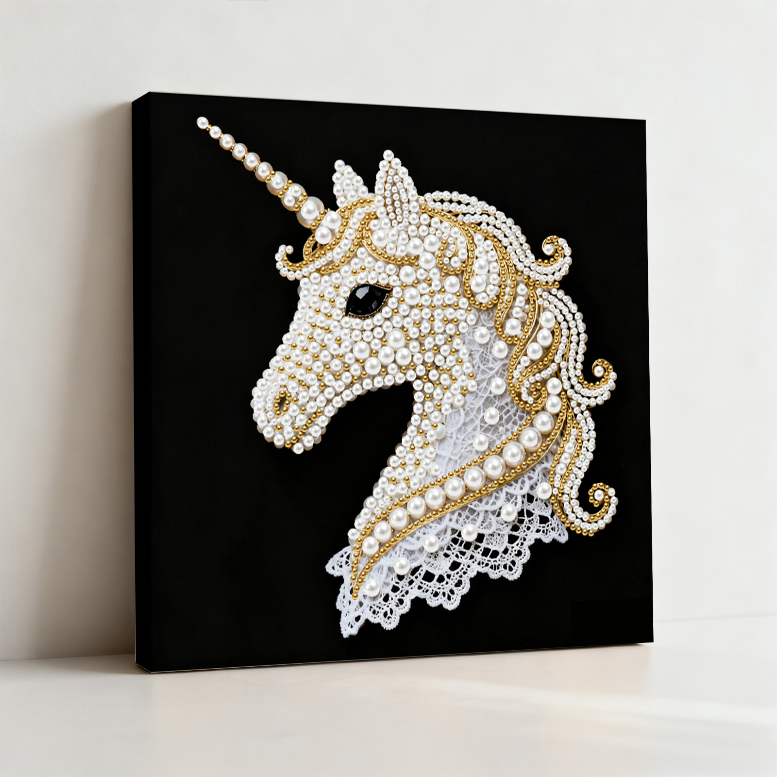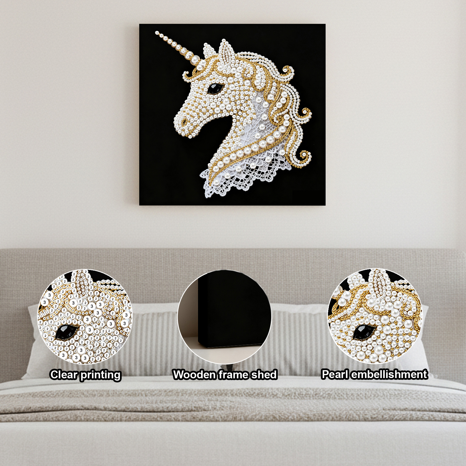 Unicorn DIY Pearl Diamond Art Kit for Adults Home Decor 25x25cm With Frame