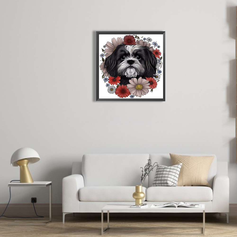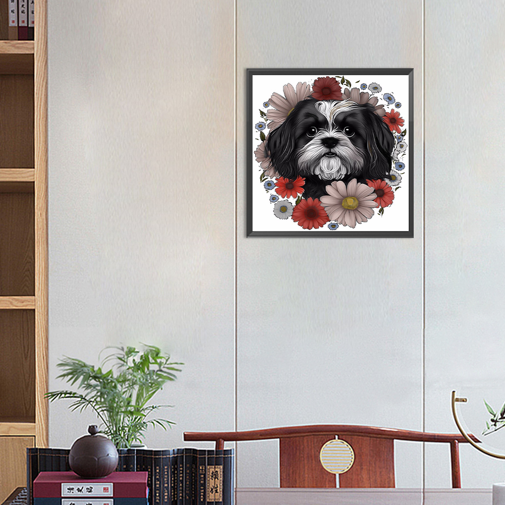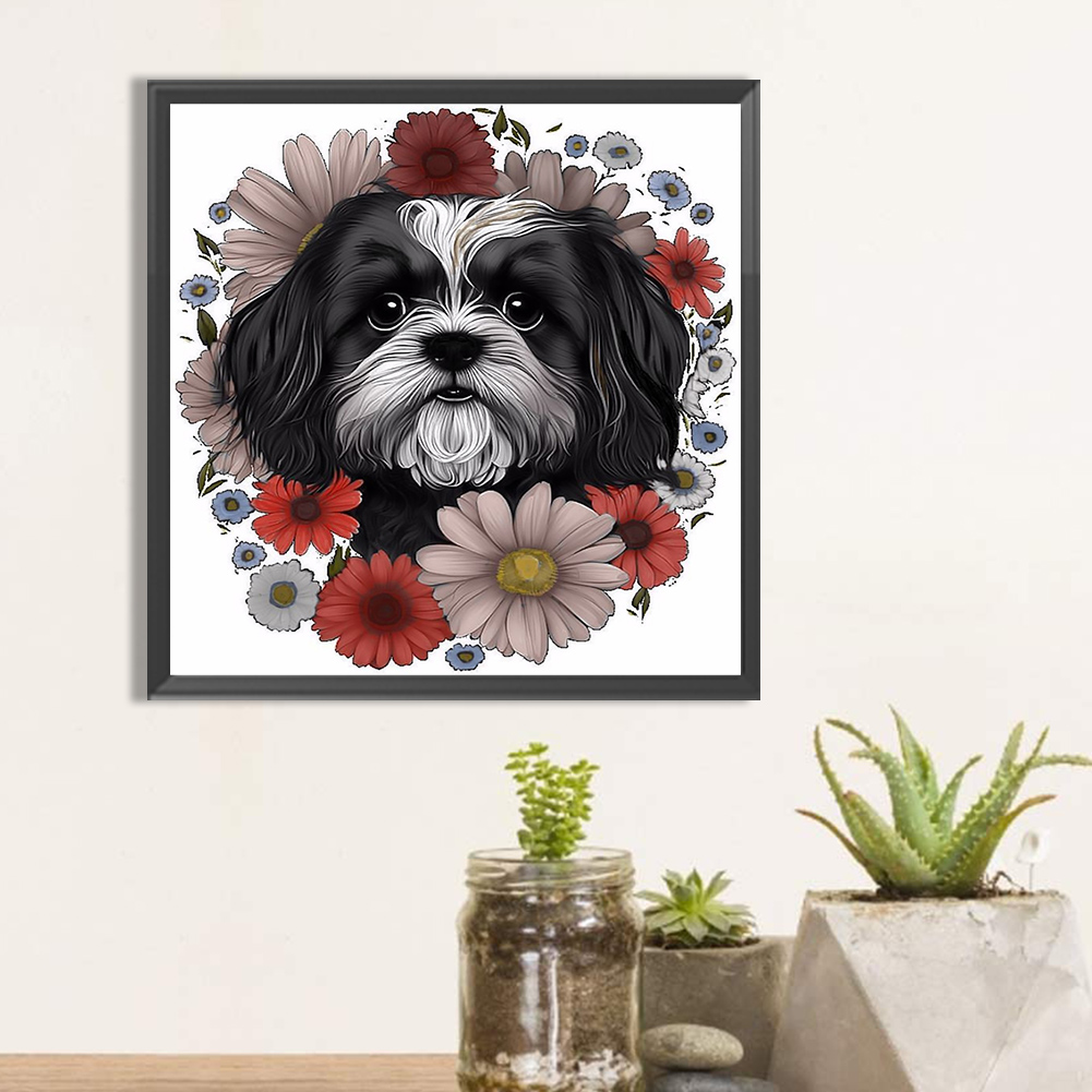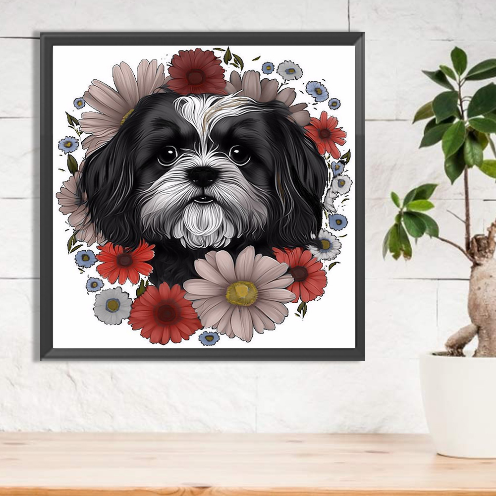 Diamond Painting - Full Round Drill - Flower Dog(Canvas|30*30cm)