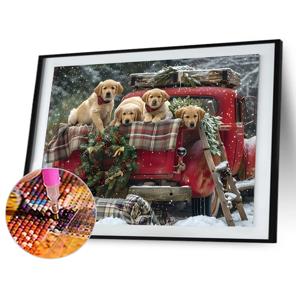 Diamond Painting - Full Round Drill - Xmas Car Dogs(Canvas|40*30cm)