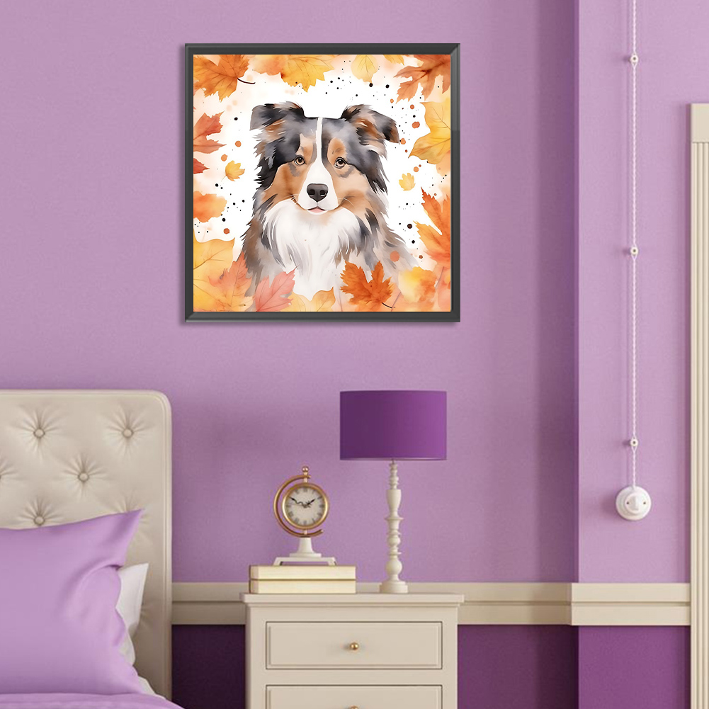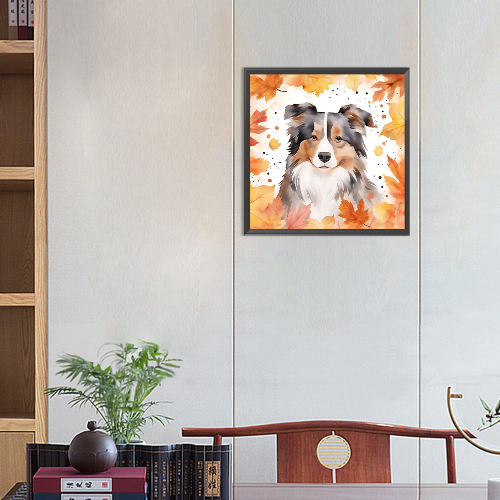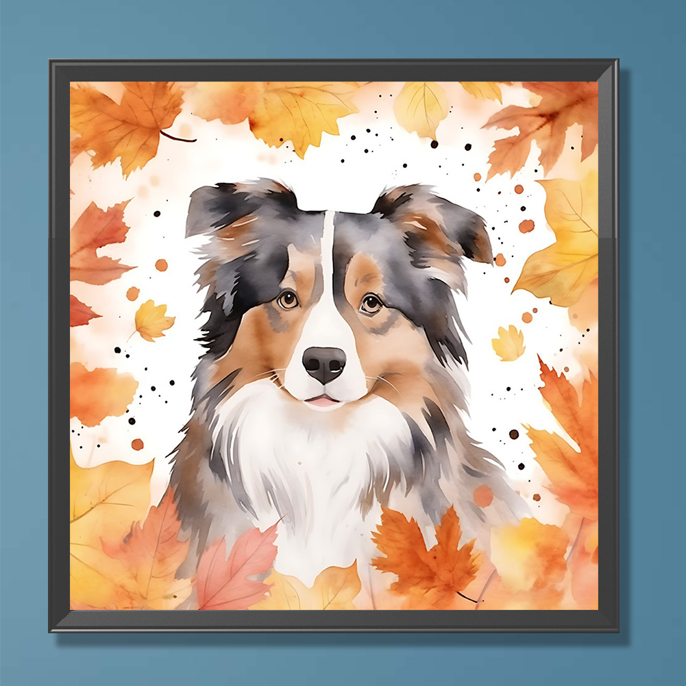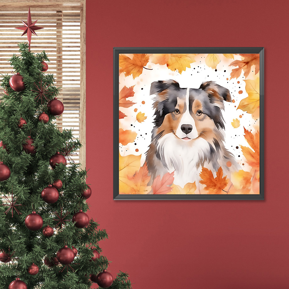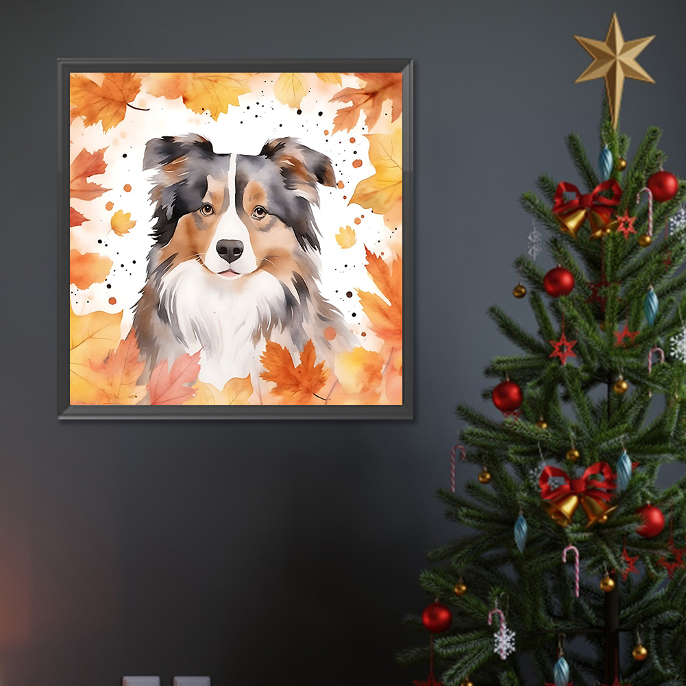 Full Round Diamond Painting 30*30cm - Maple Leaf Puppy