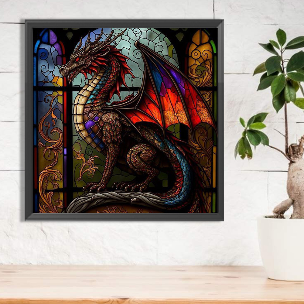 Diamond Painting - Full Round Drill - Stained Glass Dragon(30*30cm)