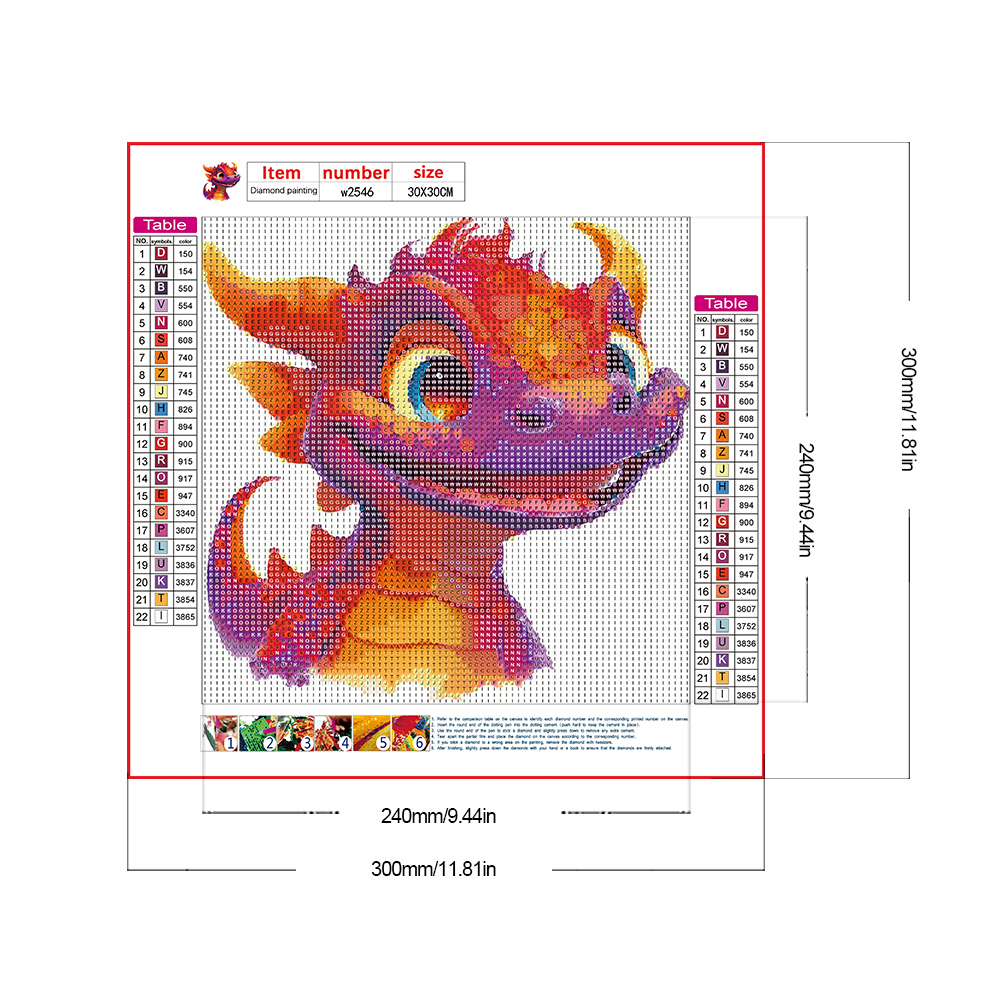 Full Round Diamond Painting 30*30cm - Little Dragon