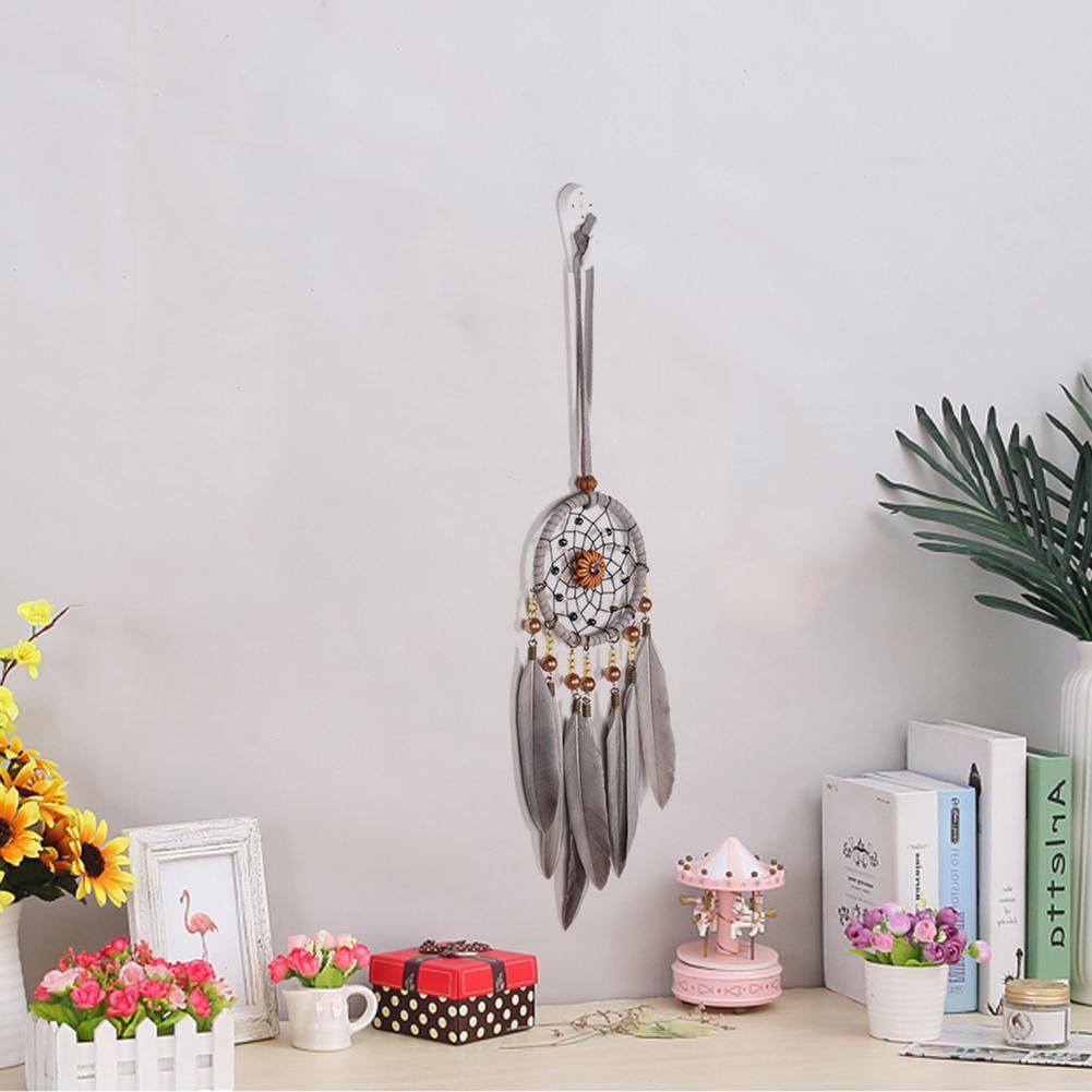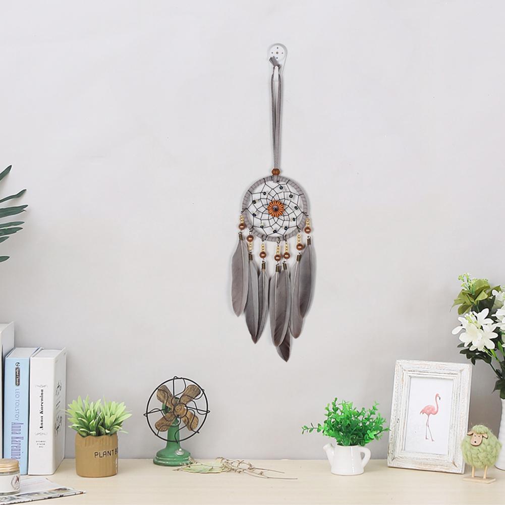 Grey Feathers Beads Pure Handmade Dream Catcher Door Wall Hanging Pendant