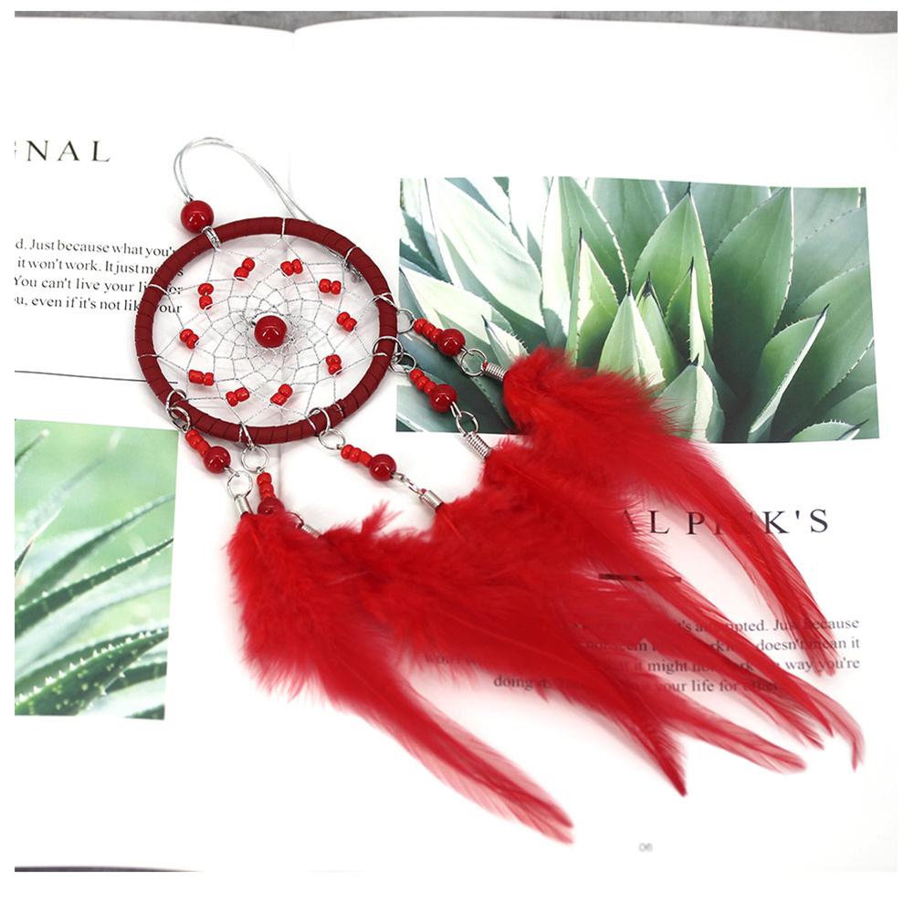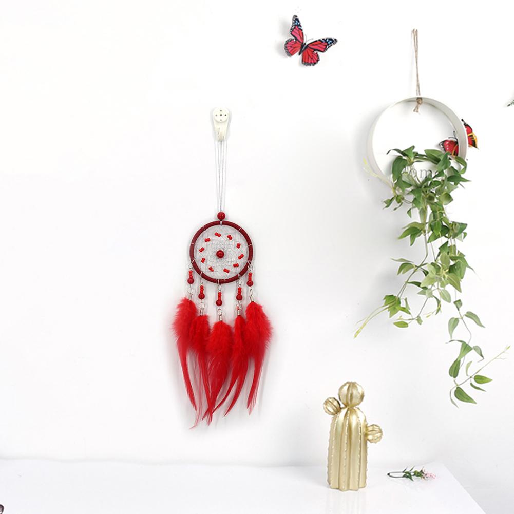Red Feathers Beads Handmade Dreamcatcher Craft Dream Catcher Net Home Car Hanging Decoration Wedding Valentine Day Gift