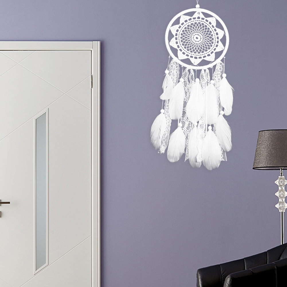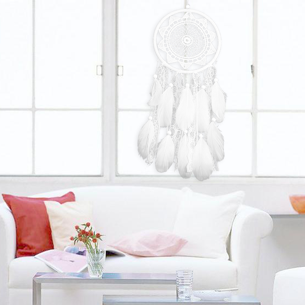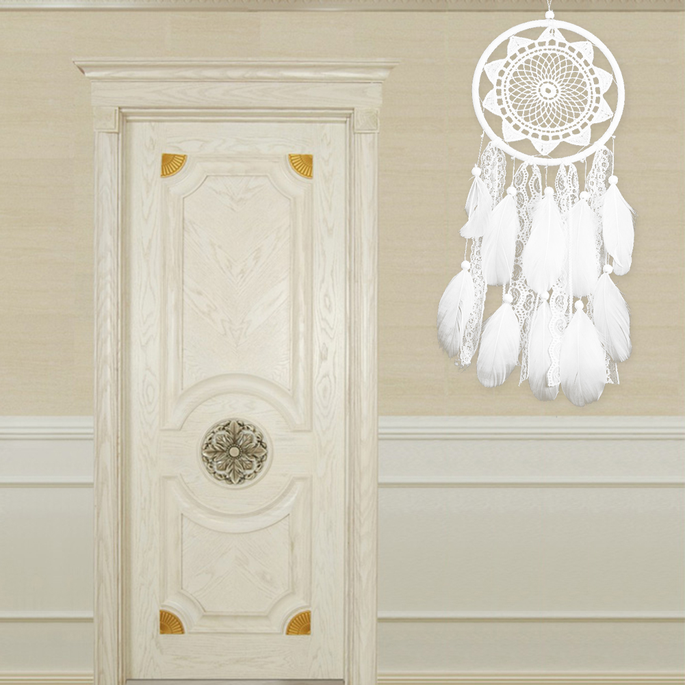 Handmade Tapestry White Dream Catcher Wooden Beads Lace Flower Pendant Feather Wind Chimes Gifts for Wedding Christmas Bedroom Car Interior Decoration Round Ring Circle Wall Hanging Ornaments