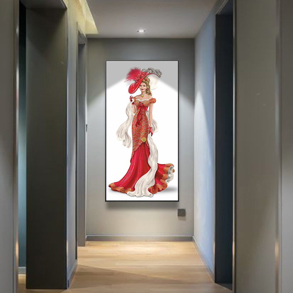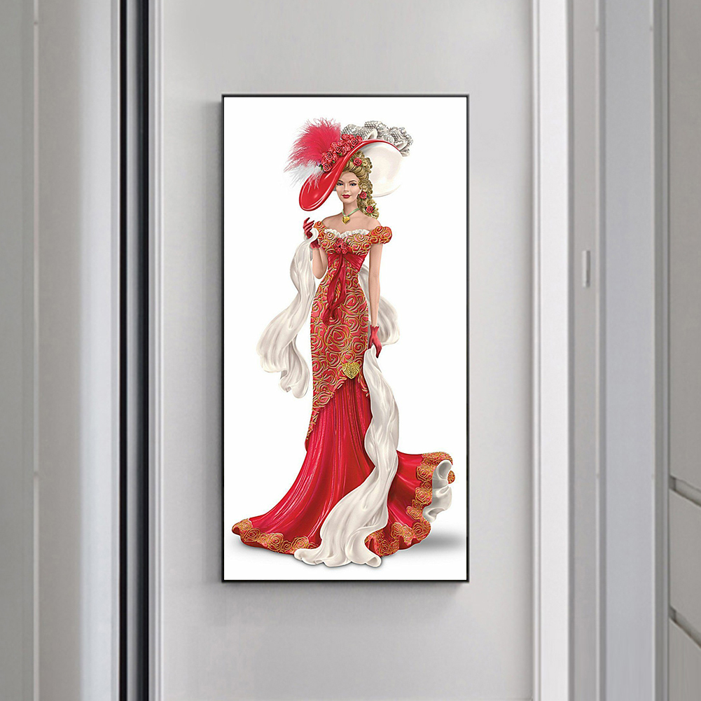 5D DIY Diamond Painting Red Dress Lady Full Round Drill Mosaic Wall Art Picture of Rhinestone Home Decoration