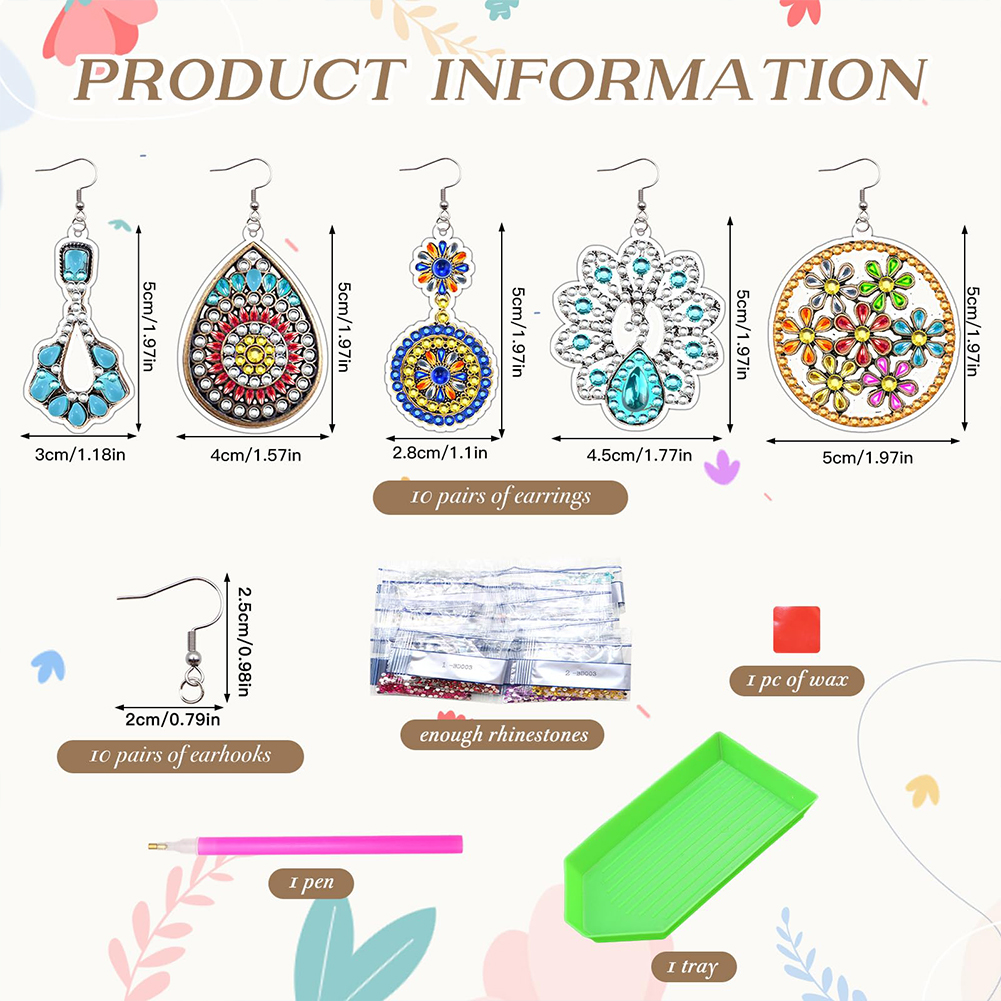 10 Pairs Diamond Painting Earrings Boho Diamond Art Earring Making Kit for Adult