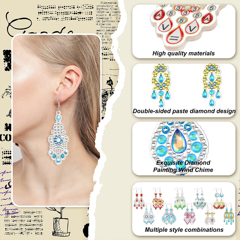 10 Pairs Double Sided Diamond Painting Earrings Gift for Women Girls