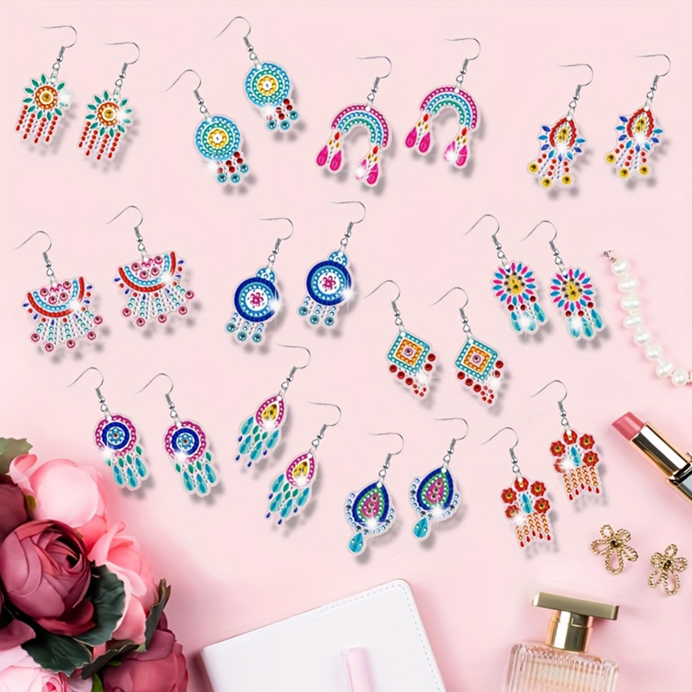 12 Pairs Diamond Painting Earrings DIY Diamond Art Earrings for Adults (B)