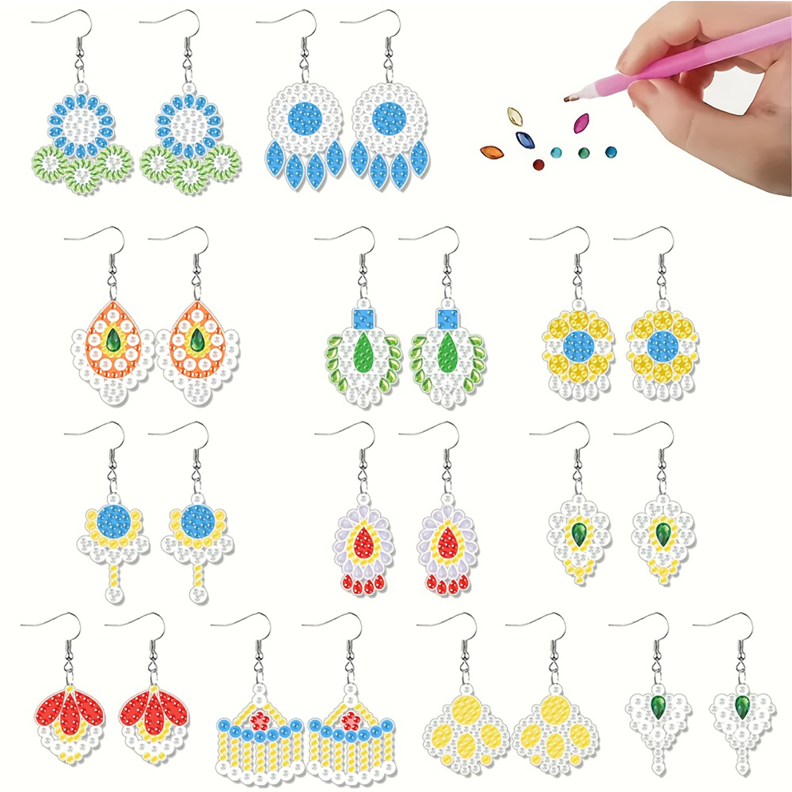 12 Pairs Flower Diamond Painting Earrings DIY Diamond Art Earrings for Adults