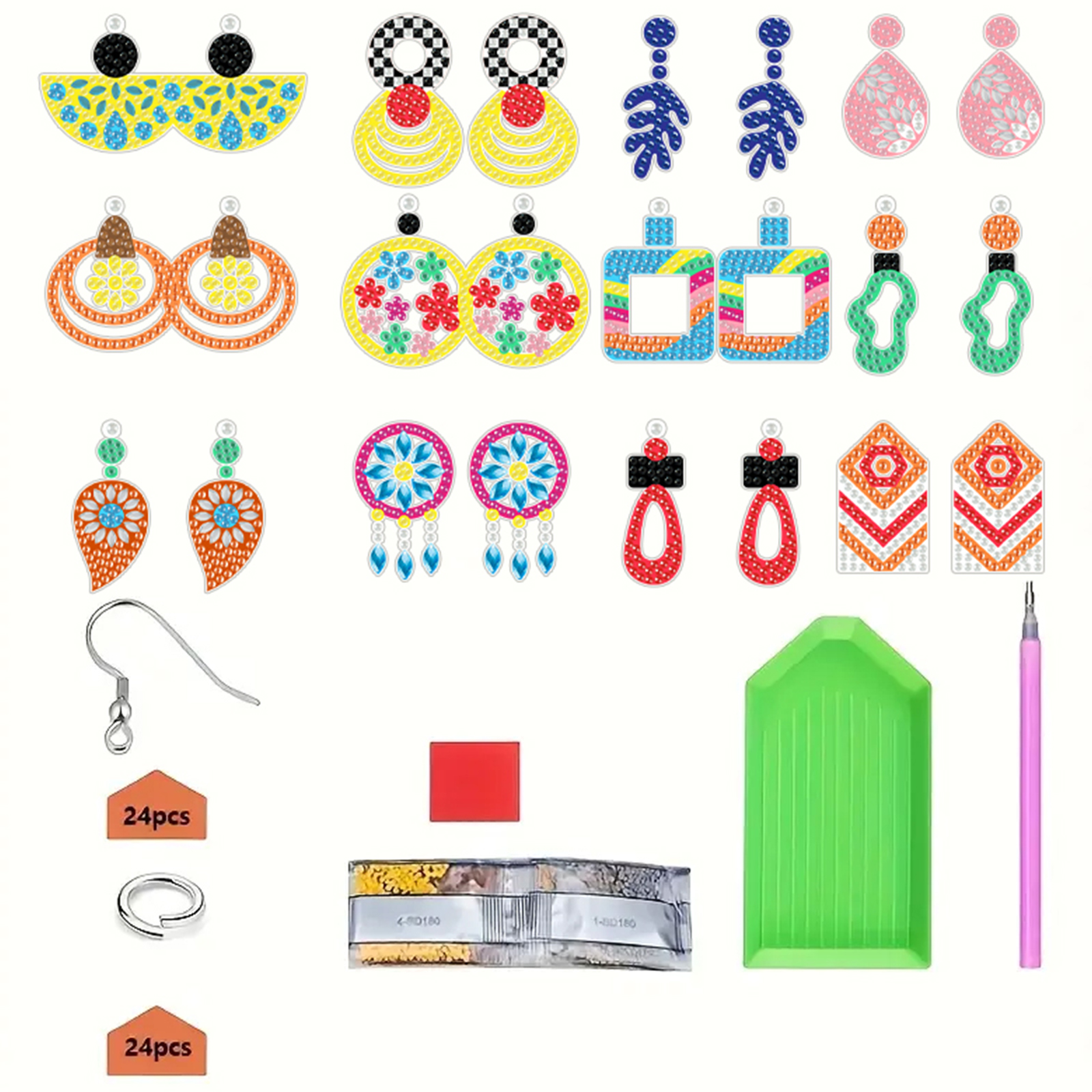 12 Pairs Geometry Diamond Painting Earrings DIY Diamond Art Earrings for Adults