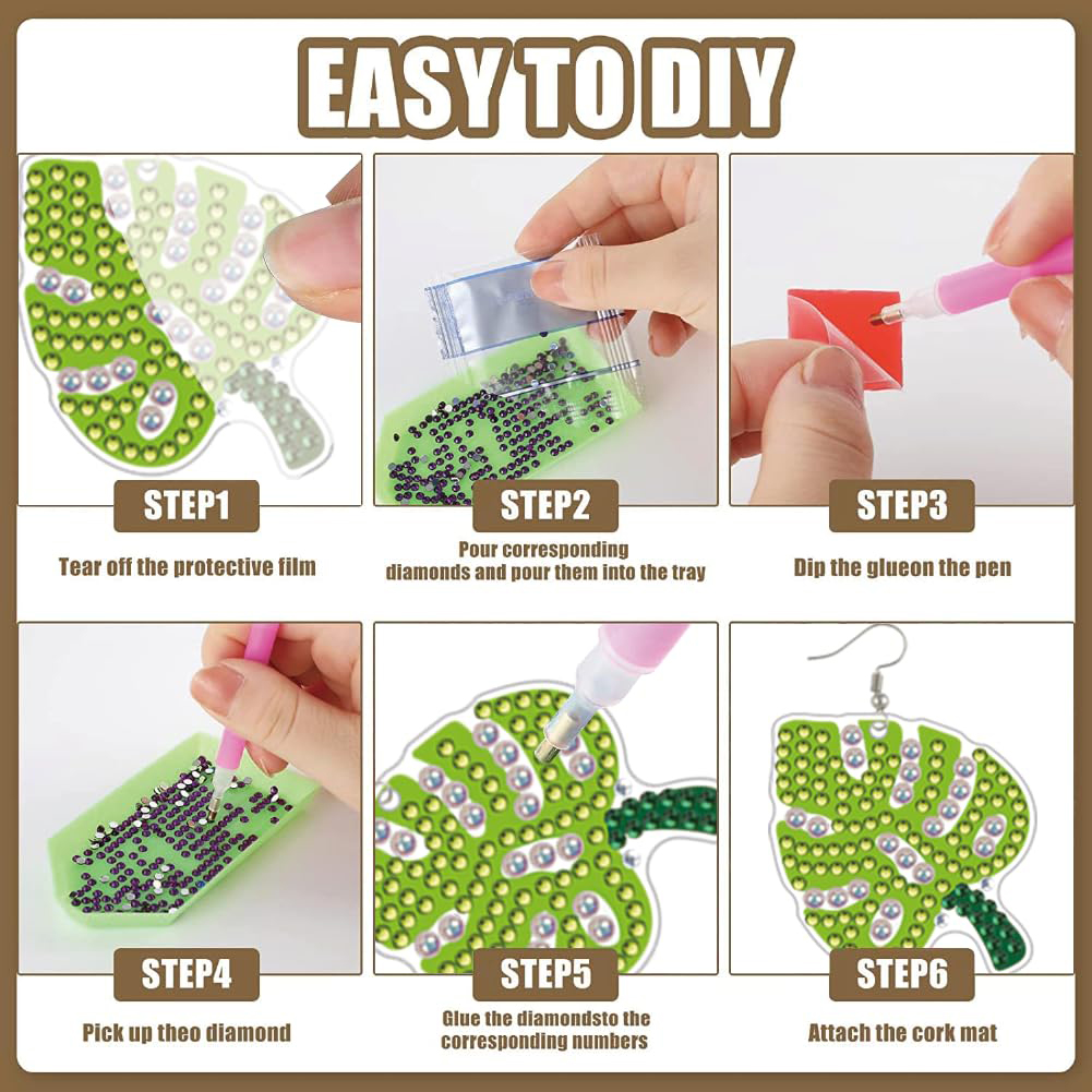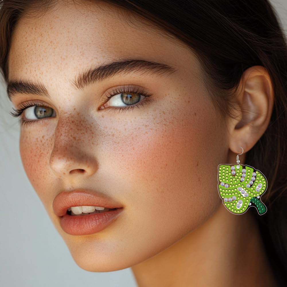 12 Pairs Leaves DIY Diamond Art Earrings Double Sided Diamond Painting Earrings