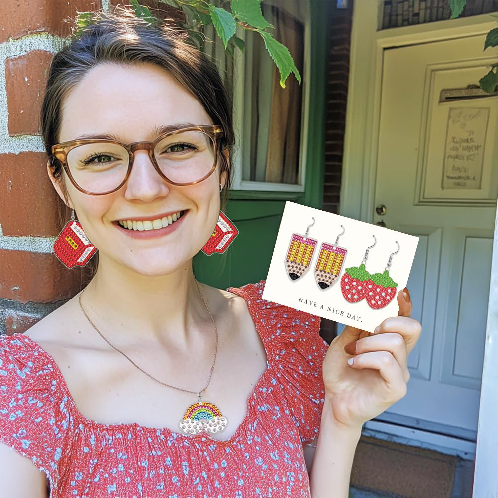 12 Pairs Stationery DIY Diamond Art Earring Double Side Diamond Painting Earring
