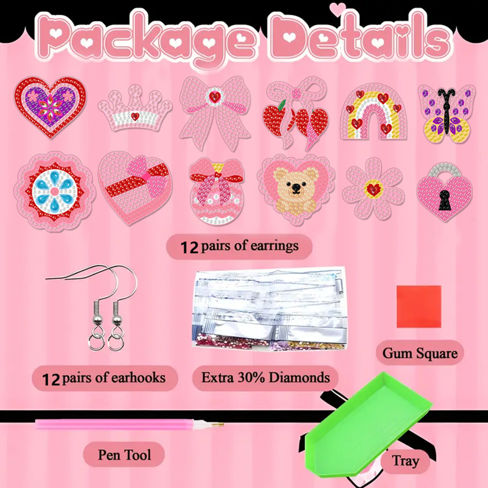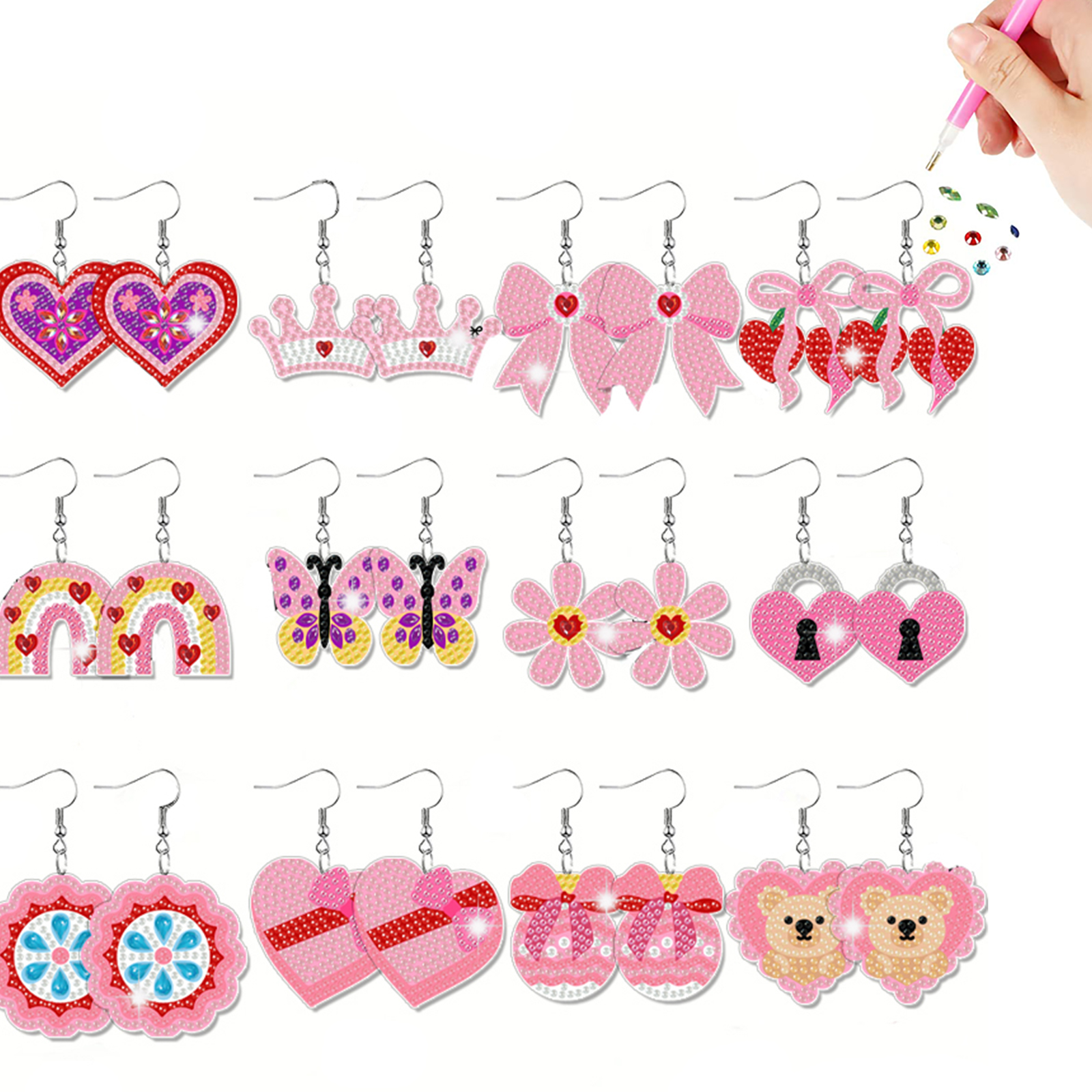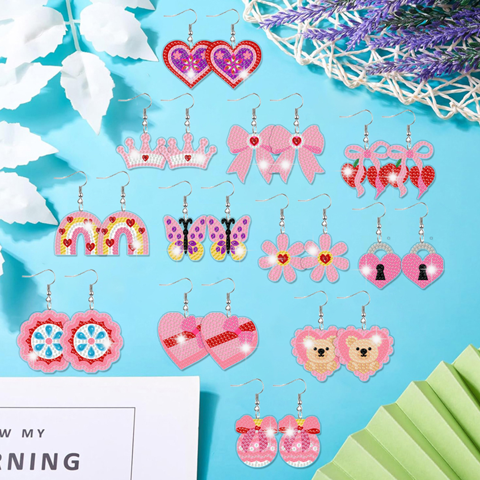 12 Pairs Valentines Day Diamond Painting Earrings DIY Diamond Art Earrings