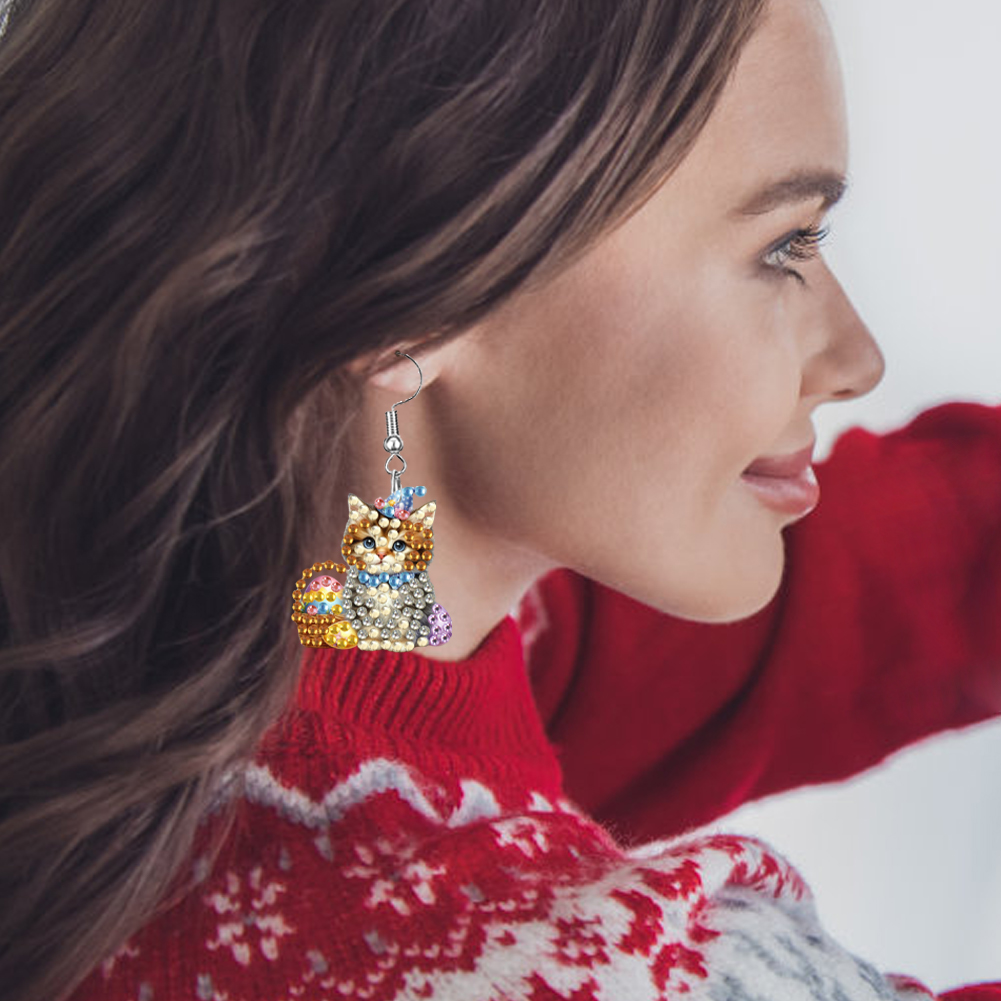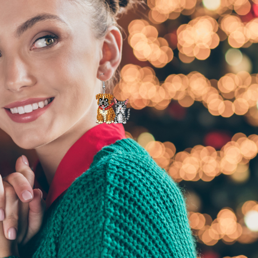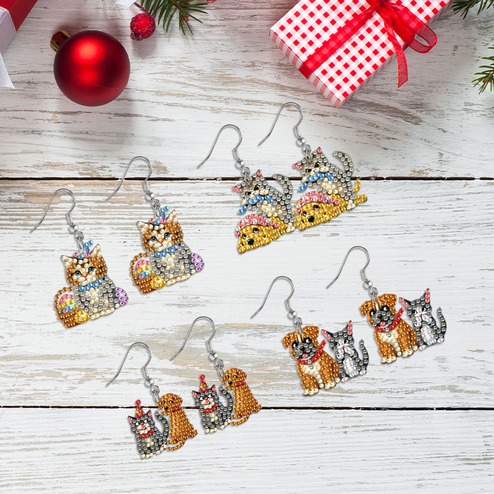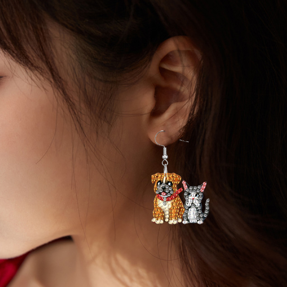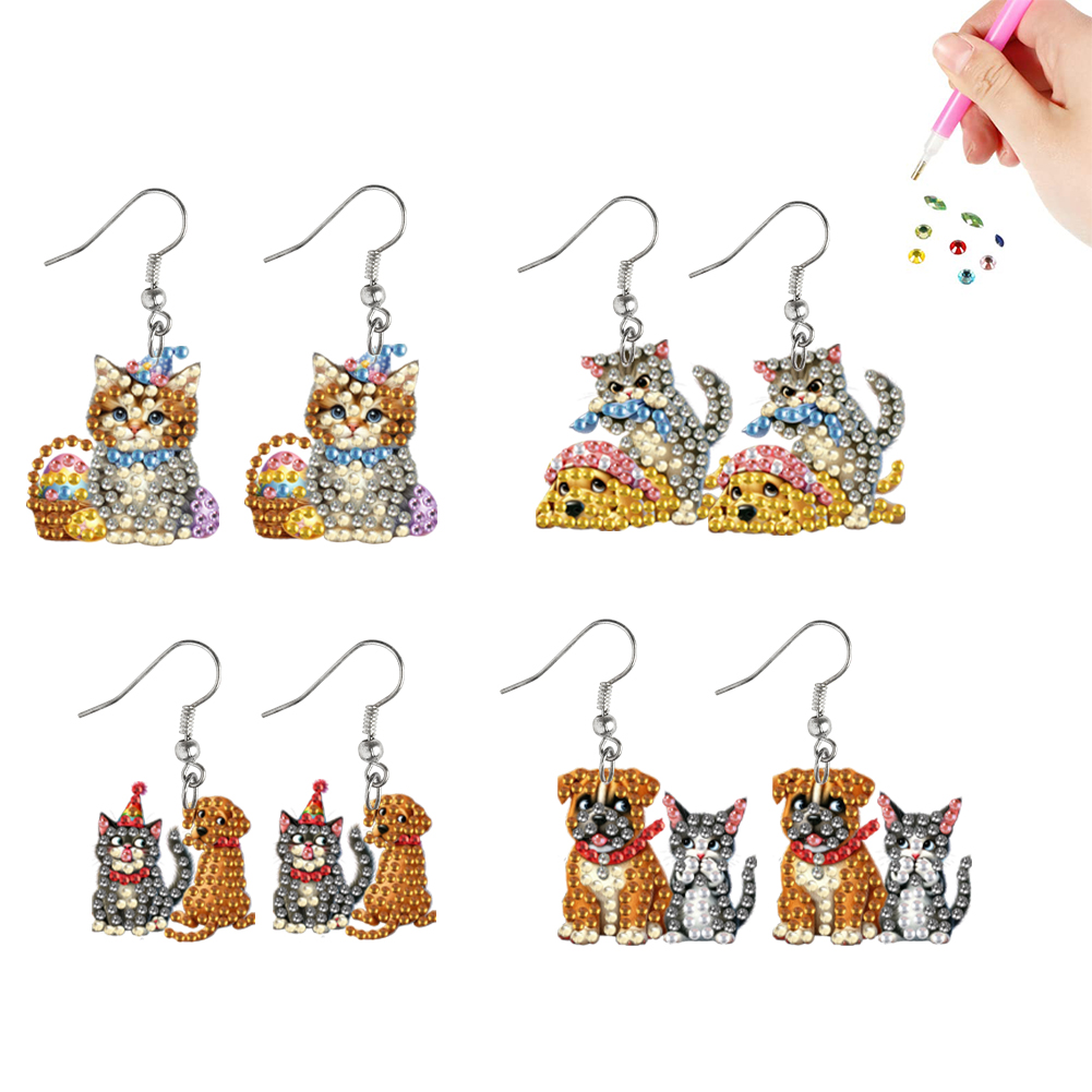 4 Pairs Cat Dog Double Sided Diamond Painting Earrings DIY Earrings Making Kit