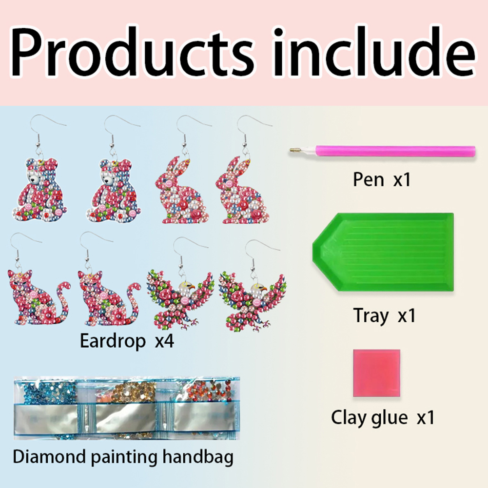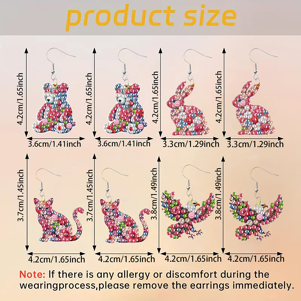 4 Pairs Double Sided Flower Animal DIY Diamond Painting Earrings for Women Girls