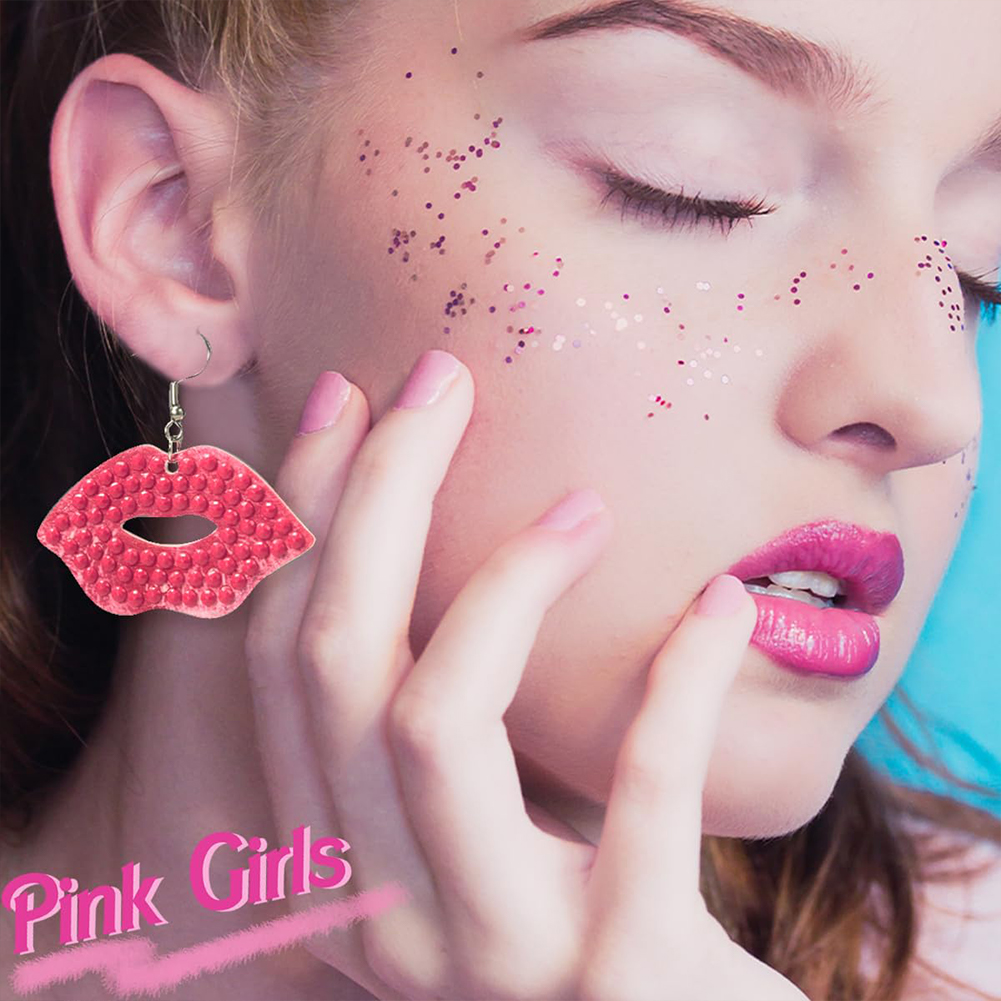 4Pairs DIY Pink Earrings Double Sided Holiday Diamond Art Earrings for Women