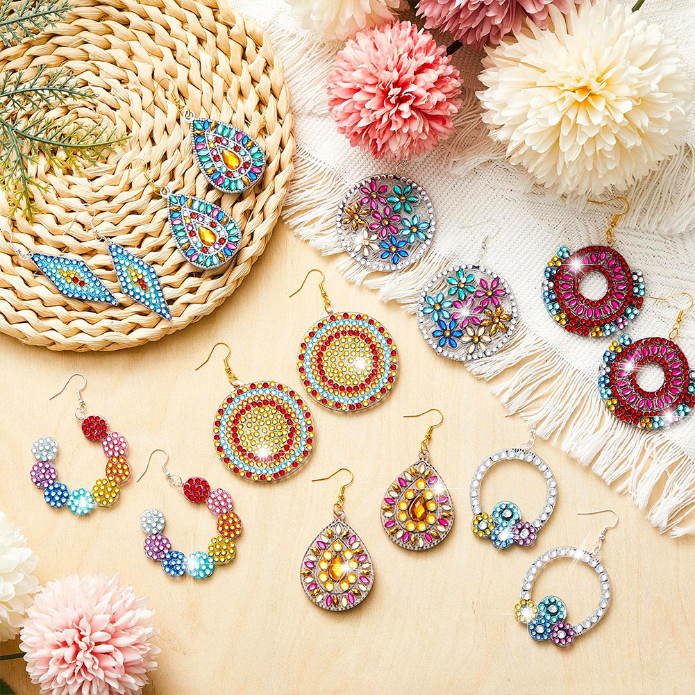 8Pairs Double Sided Diamond Painting DIY Earring Making Kit for Women Girls