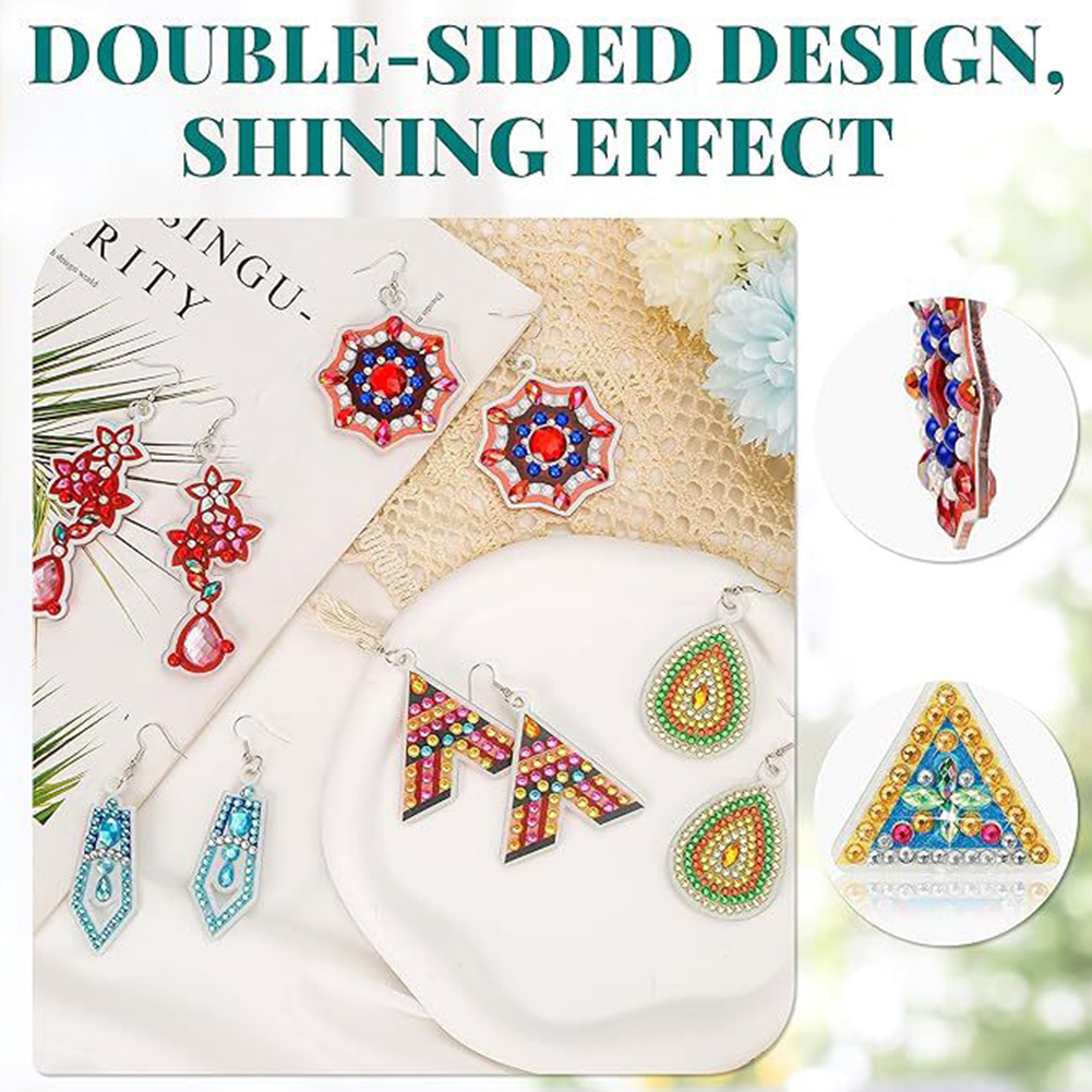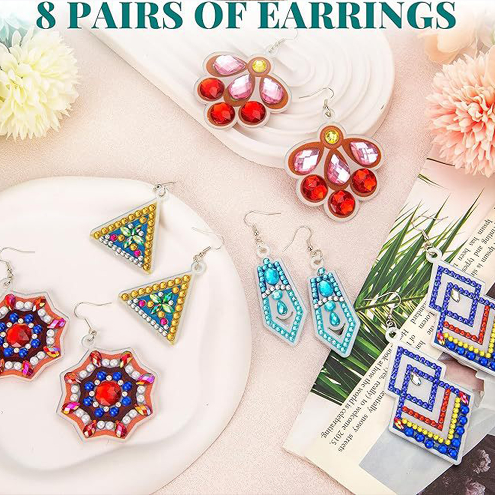 8Pairs Double Sided Diamond Painting DIY Earring Making Kit for Women Girls