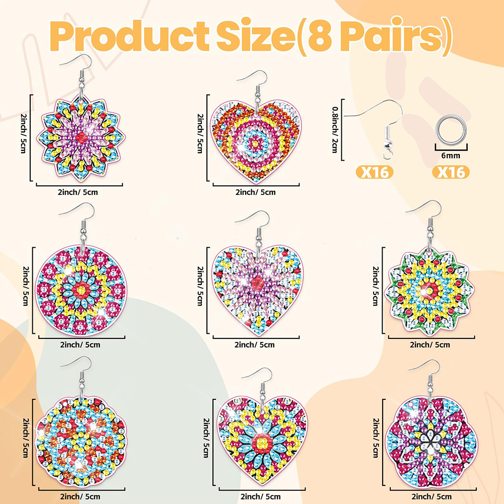 8Pairs Double Sided Diamond Painting DIY Earring Making Kit for Women Girls