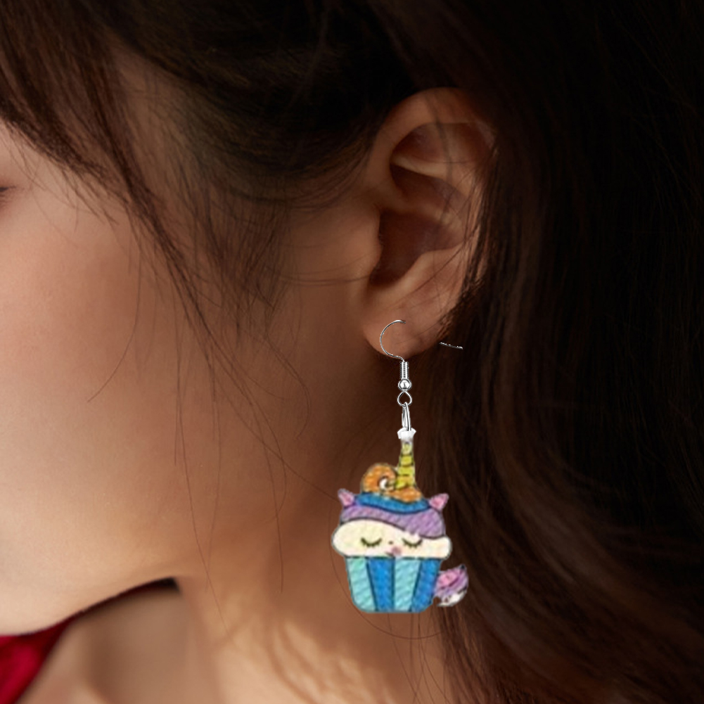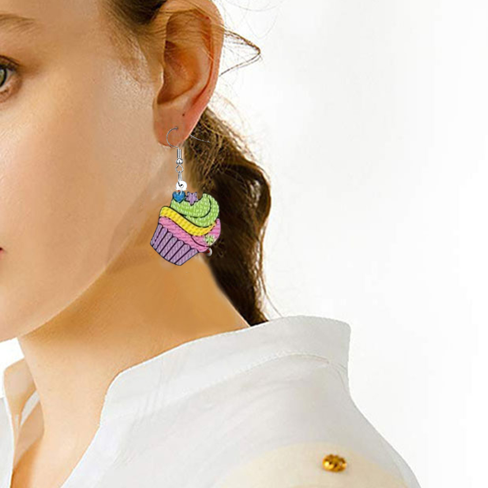 9 Pairs DIY Fruit Cake Candy Rainbow Double Sided Diamond Painting DIY Earring Making Kit