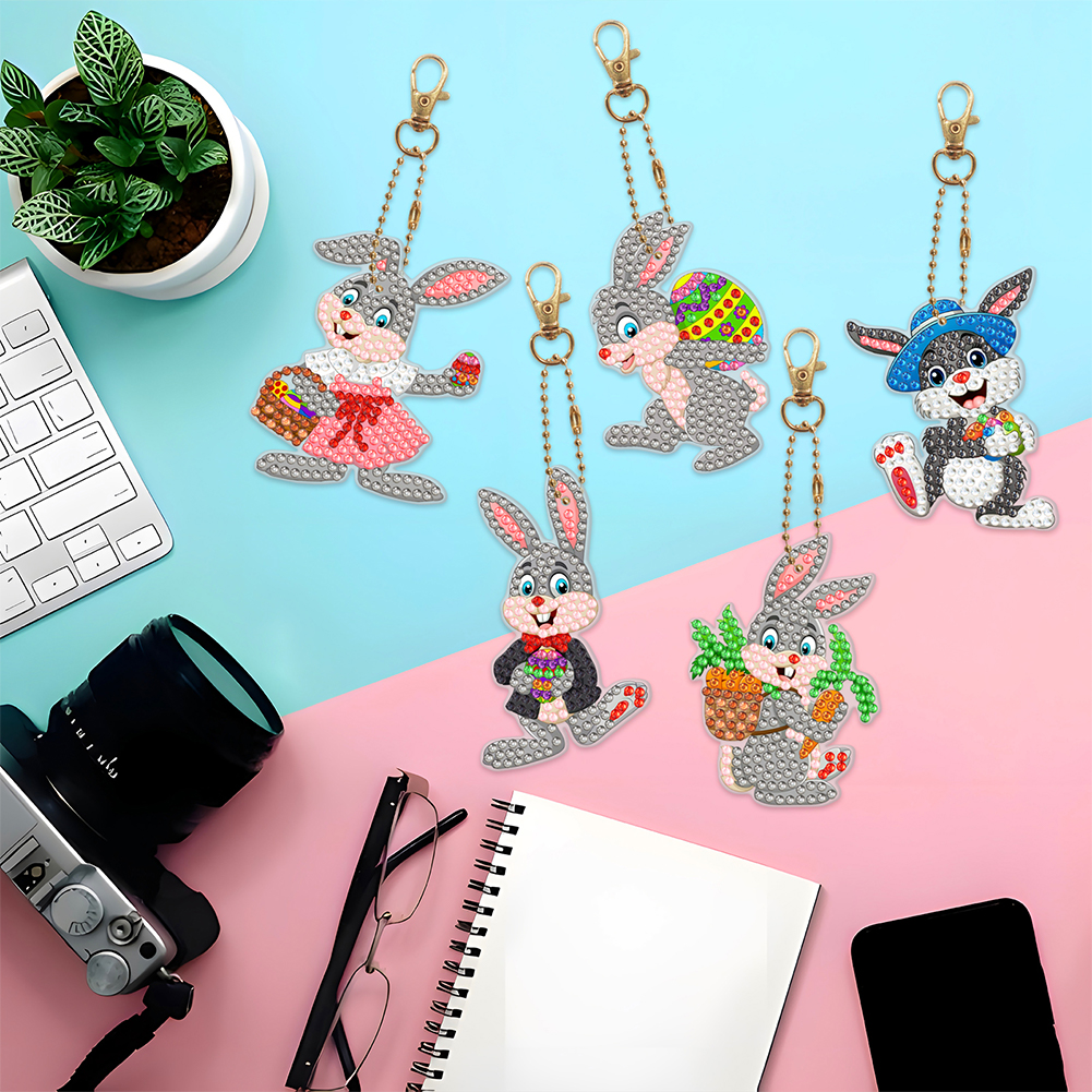 5pcs DIY Animal Key Chains Craft Handmade Double Sided Rabbit Pattern for Gifts