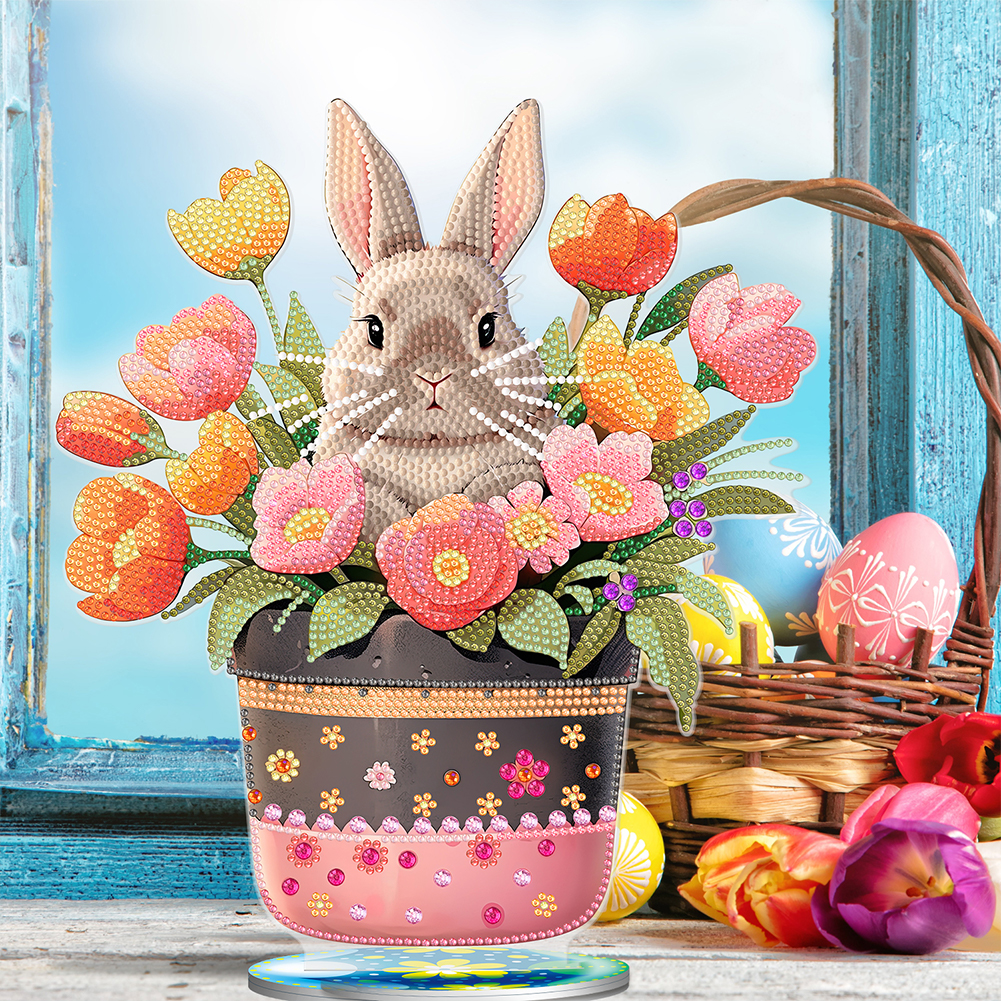 DIY Easter Egg Bunny Acrylic Single Sided Diamond Painting Desktop Ornaments Kit for Office Desktop Decor