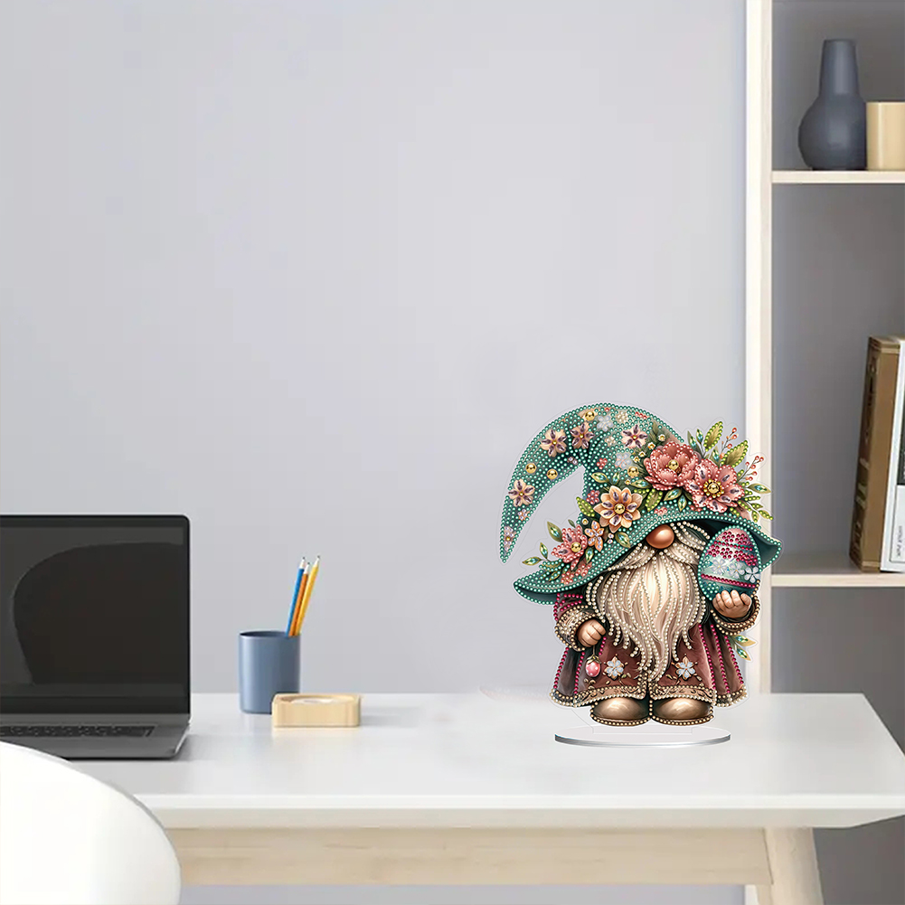 DIY Easter Egg Gnome Single-Sided Acrylic Diamond Painting Tabletop Ornament for Home Office Desktop Decor