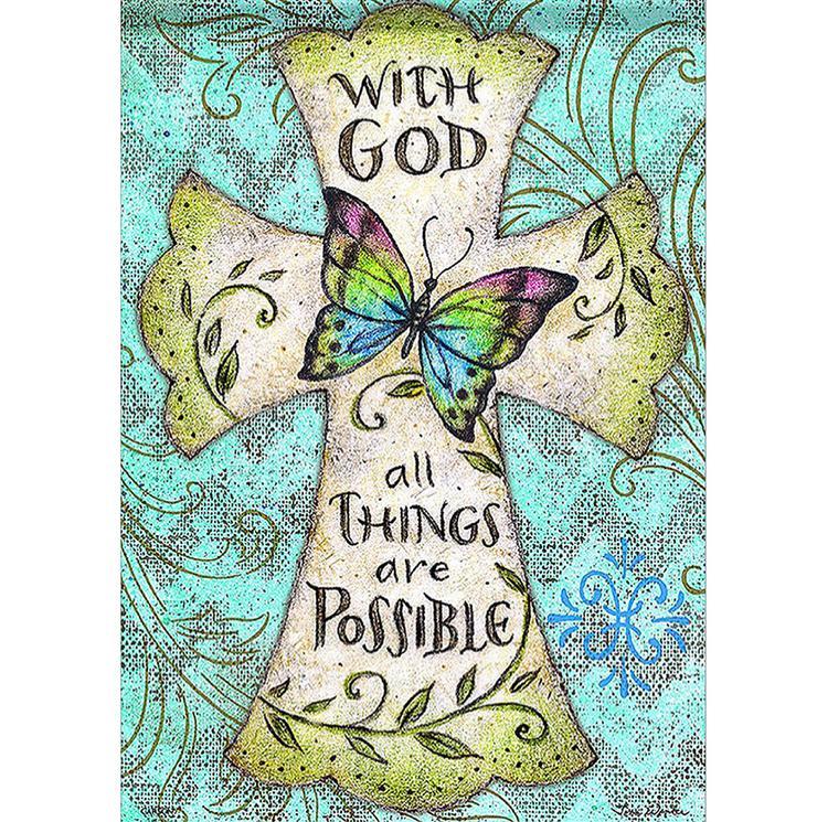 Diamond Painting - Full Round Drill - Easter Butterfly and Cross(30*40cm)