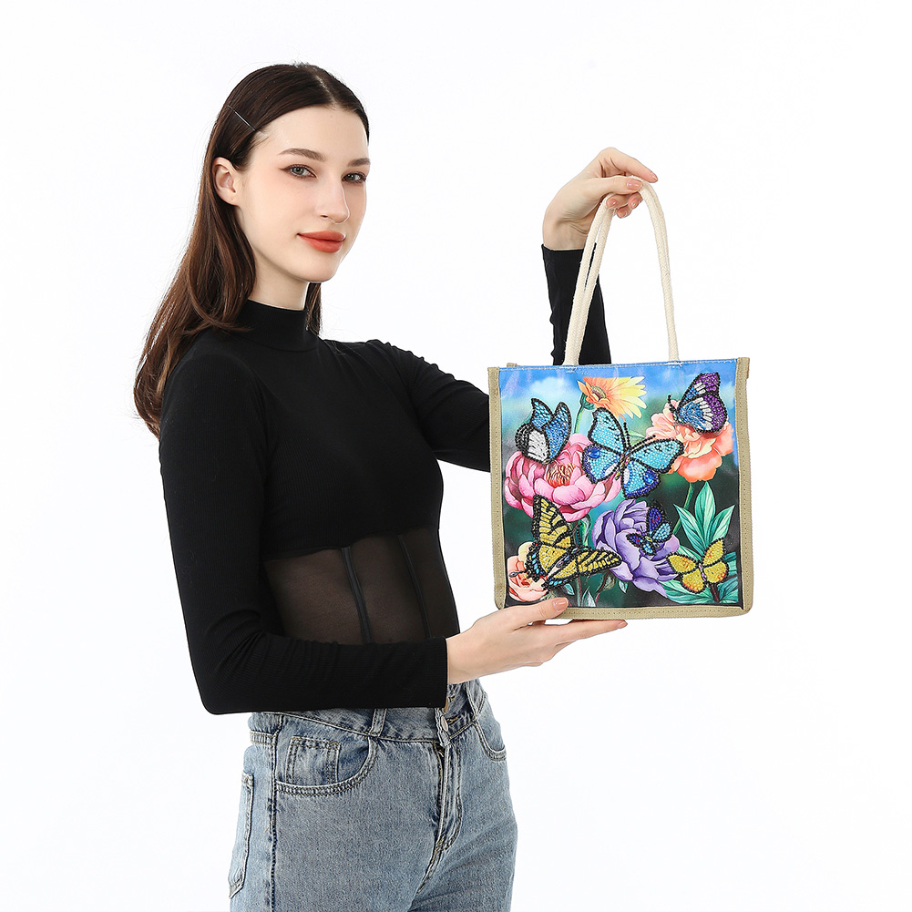 Butterfly Diamond Painting Handbag DIY Linen Shopping Tote Bag