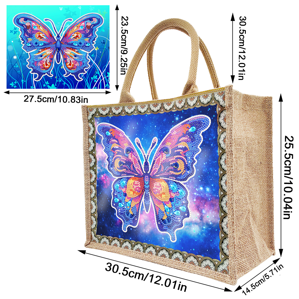 [Upgrade - Waterproof Bag]DIY Butterfly Linen Diamond Painting Tote Bag Replaceable Canvas for Women Adults