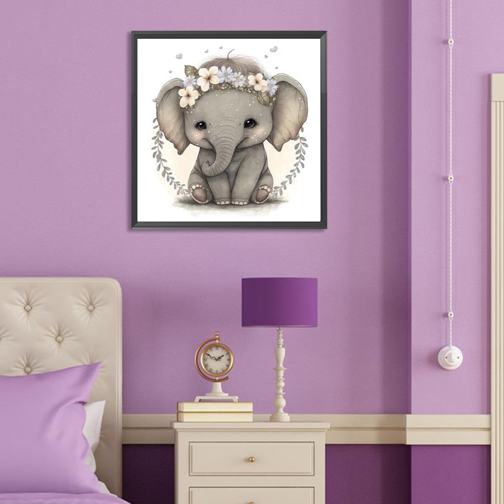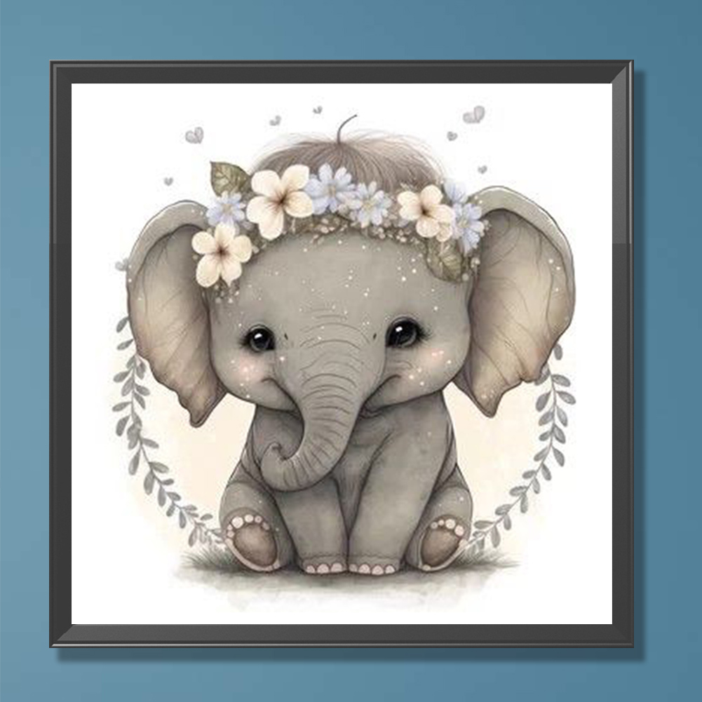 Diamond Painting - Full Round Drill - Cute Elephant(Canvas|30*30cm)