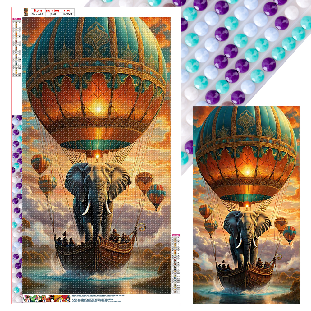 Diamond Painting - Full Round Drill - Elephant Hot Air Balloon(Canvas|40*70cm)