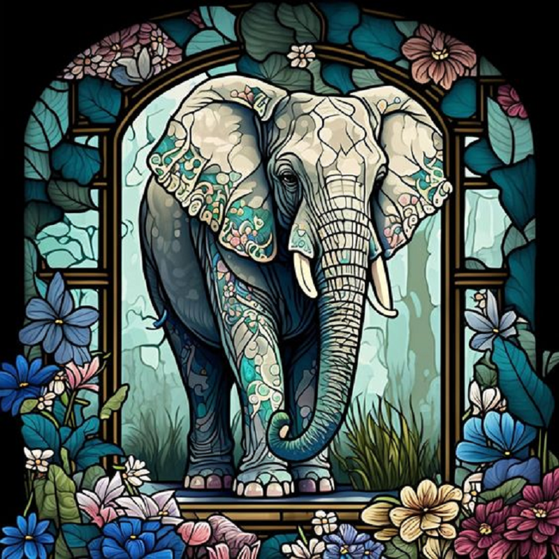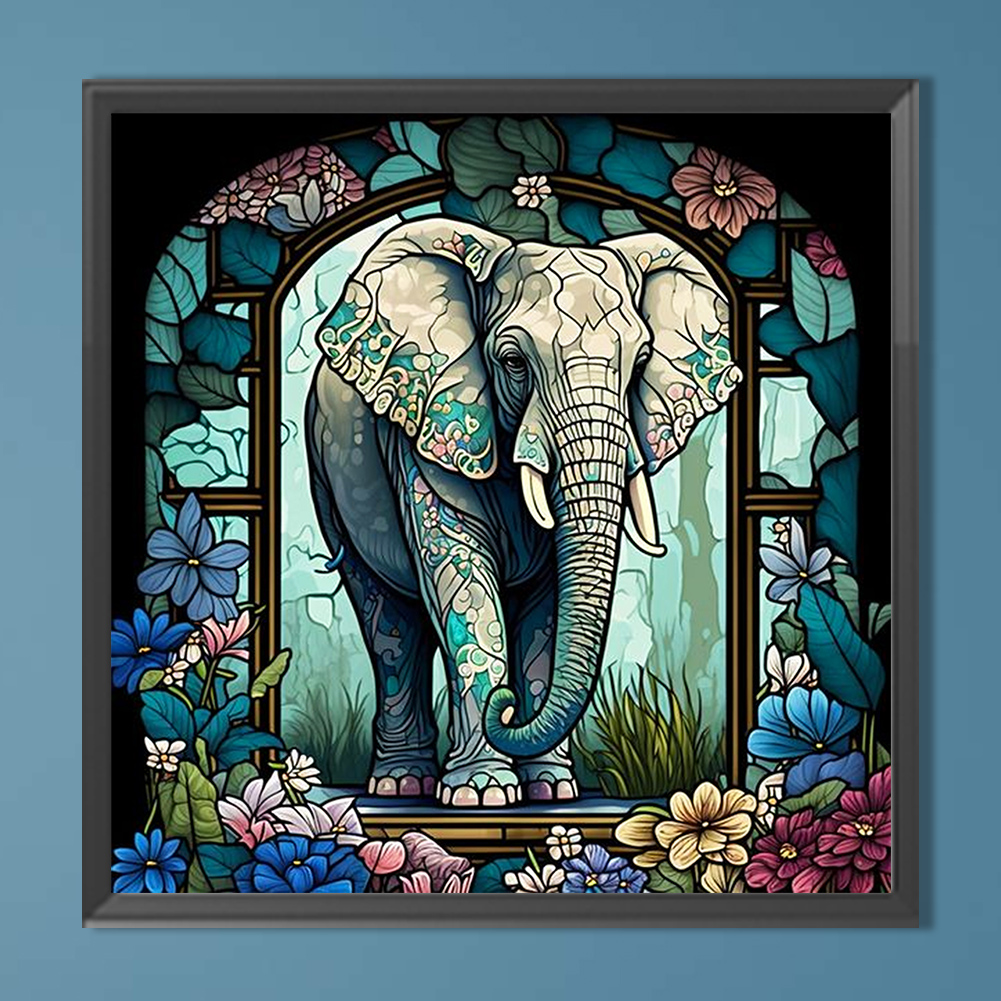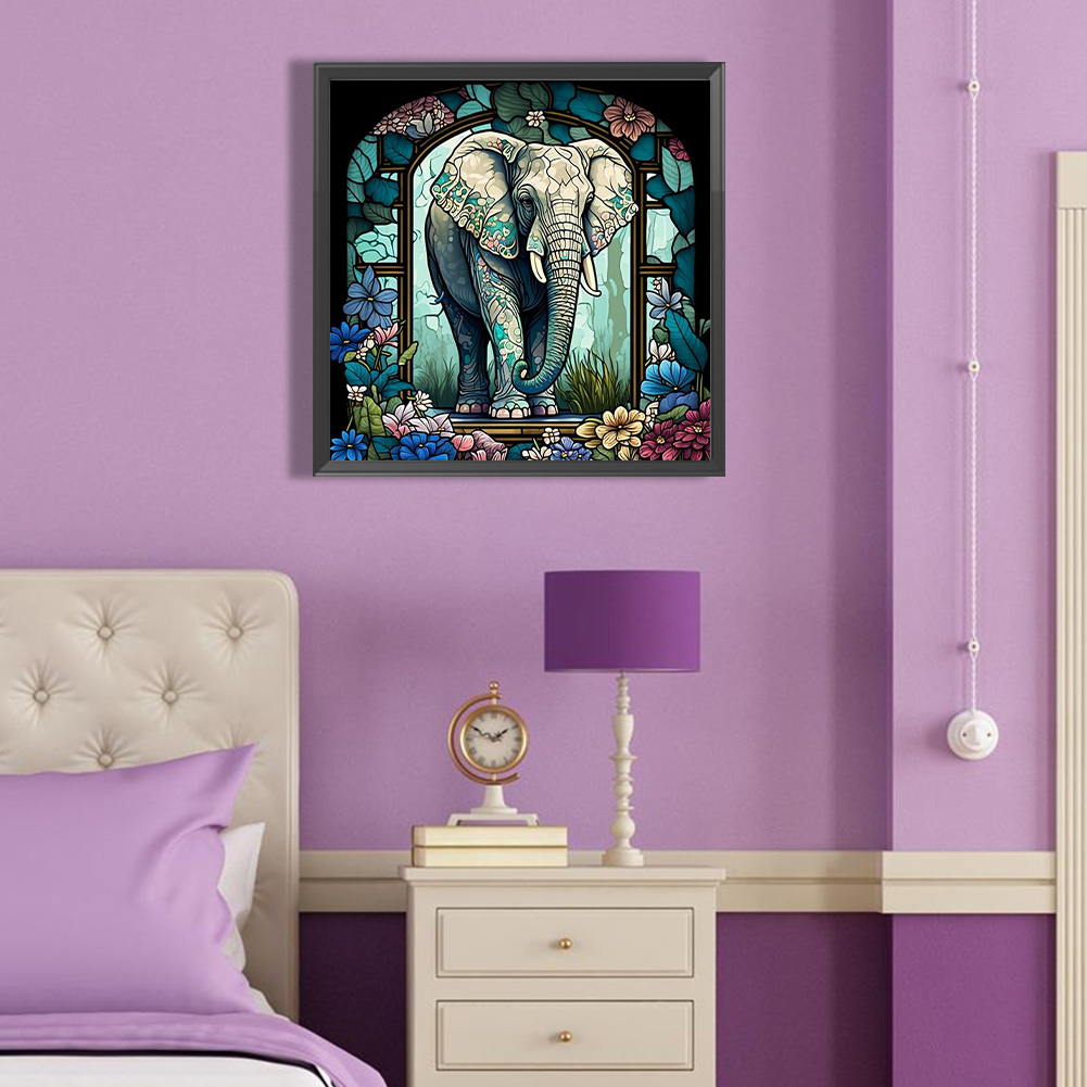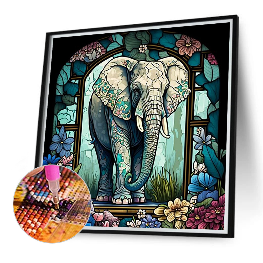 Diamond Painting - Full Round Drill - Stained Glass Elephant(Canvas|40*40cm)