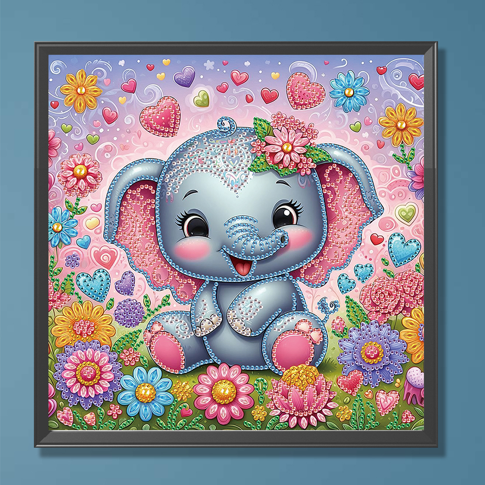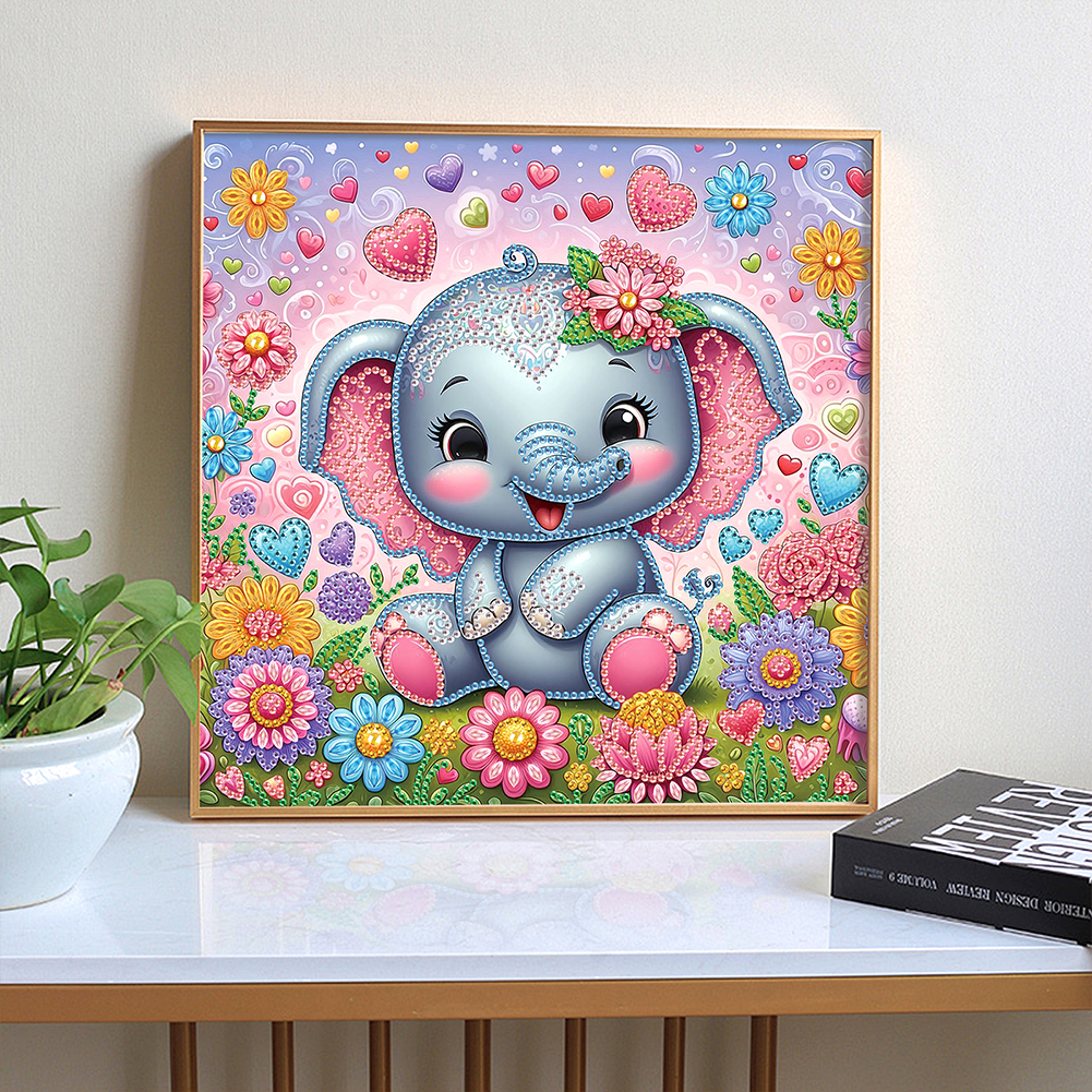 Diamond Painting - Partial Special Shaped Drill - Flower Cute Elephant(Canvas|30*30cm)