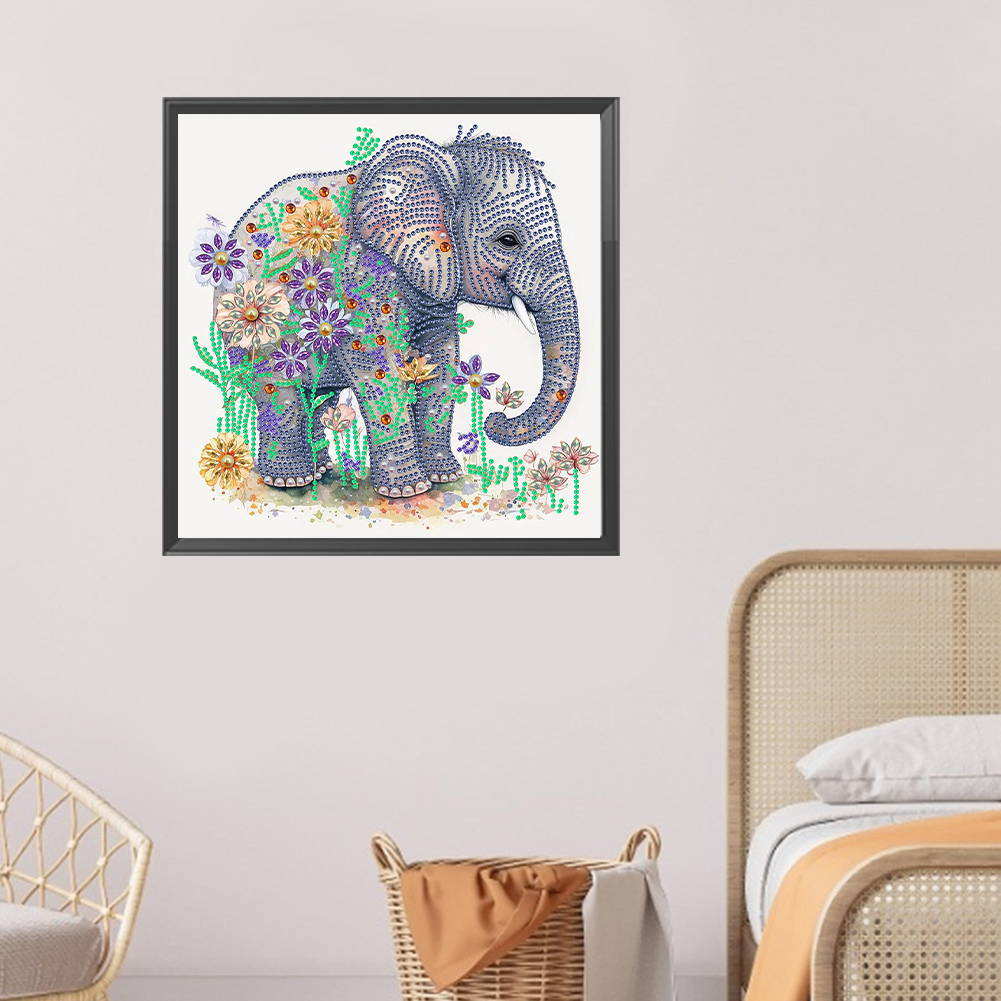Diamond Painting - Partial Special Shaped Drill - Flower Elephant(Canvas|30*30cm)
