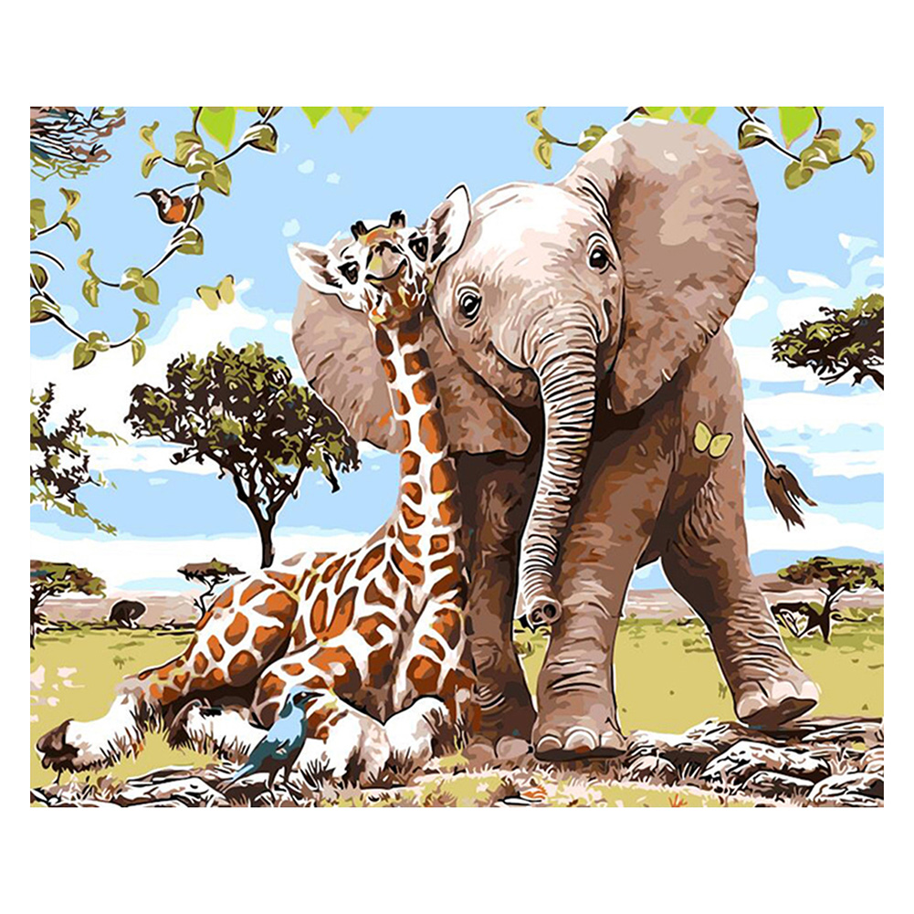 Full Round Diamond Painting 30*35cm - Giraffe Elephant